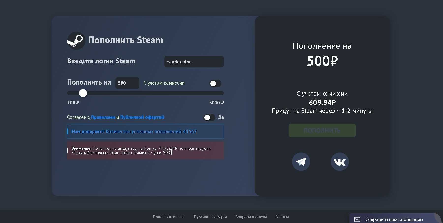 Есть и другие проекты, например, steam-balance.ru или steampay.store. Они тоже удобны и могут помочь, если вы превысили лимит на пополнение в других сервисах. Правда, комиссия там выше.
