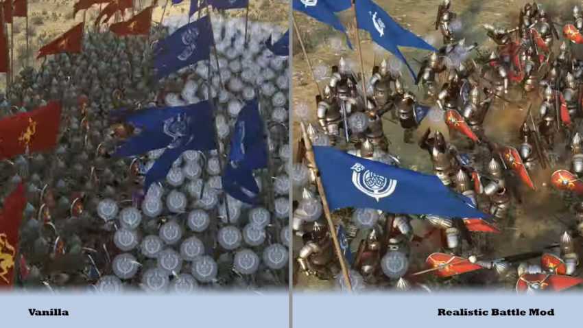 Realistic Battle Mod поставляется с двумя отдельными модулями и дополнительными необязательными файлами. Один модуль направлен на то, чтобы довести параметры брони до тошнотворного уровня реализма (вплоть до расчета джоулей по толщине пластины), в то время как другой выводит ИИ на новый уровень интеллекта. Посмотрите, как ваши бронированные рыцари играют более агрессивно против крестьян, а ваши крестьяне отступают от воинов с классической подготовкой.