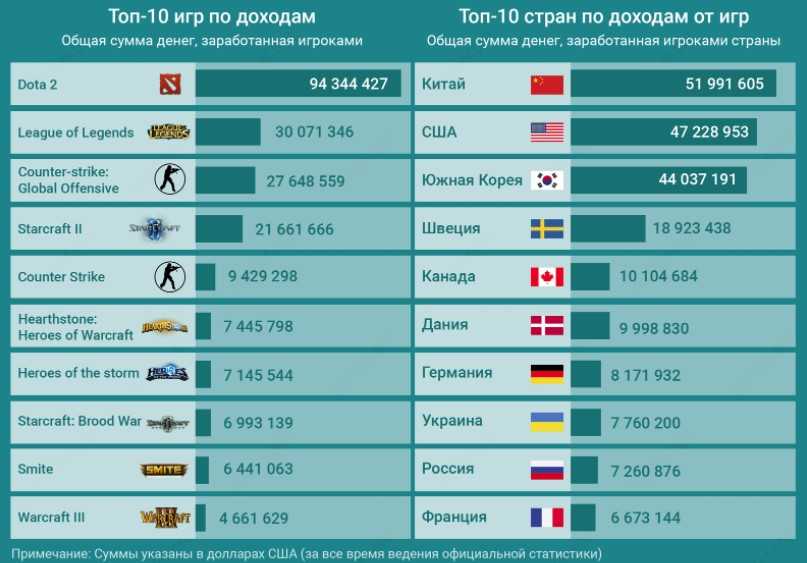 Каждый год проводятся тысячи турниров по разным дисциплинам. Если в одном городе призовой фонд составляет всего 500$, то в другом, скажем, мировом чемпионате, сумма растет до 30 млн.$ а, то и больше. К примеру, известная всем в мире компания Valve ежегодно поднимает ставки, увеличивая призовые основного турнирного состязания по Dota 2. На 2020 год он был 34 330 500 $, а в 2021 40,018,195 $.