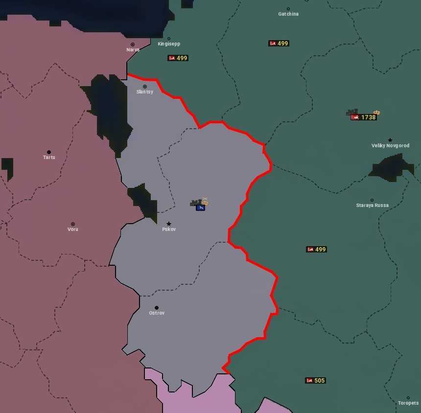 Перед началом войны нужно сделать линию фронта. На каждой пограничной провинции нужно поставить по 500 солдат, чтобы мы могли кое-как сдерживать врага при его атаках (И не гоняться за ним, если он все же пробьет линию обороны)