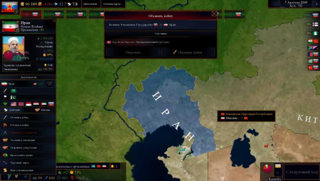 Все просто – это действие объявляет войну государству. Но есть одно “НО” – нельзя объявлять войну в первые 4 хода.