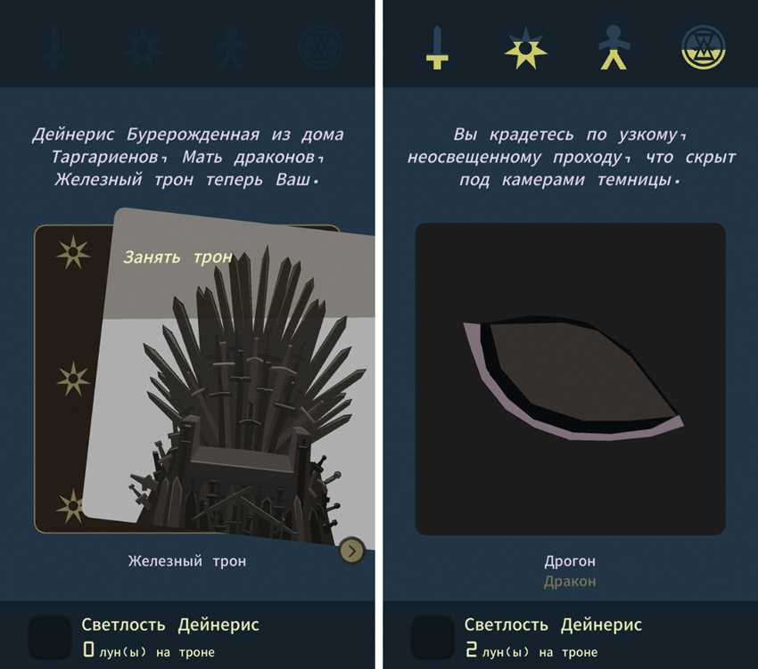 Вы сможете стать Дейенерис Таргариен, Тирионом Ланнистером, Сансой Старк, Серсеей Ланнистер и даже Джоном Сноу, который не любит быть на троне — каждого из них ждут особенные события, которые будут доступны только для него.