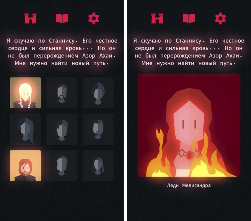 Именно поэтому Reigns: Game of Thrones выходит за рамки оригинальной сюжетной линии и показывает возможное будущее главных персонажей истории глазами сексапильной Красной жрицы Мелисандры, которая здесь всегда вся прямо горит.