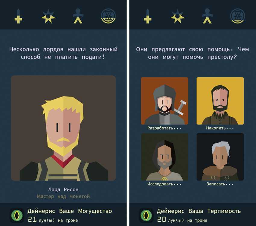 Игра выглядит максимально аутентично не только с точки зрения Reigns, но и со стороны «Игры престолов»: у нее приятная минималистичная графика, которая точно пришлась нам по вкусу.