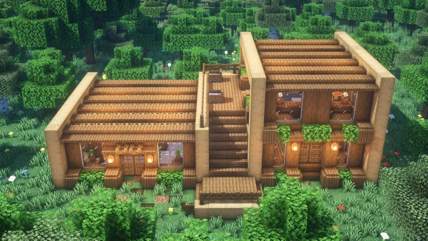 Приятным штрихом к этому дизайну являются свисающие лозы на балконе. Это придает дому декоративный оттенок, особенно дополняя доминирующие коричневые цвета. Для базы Minecraft этот дом выглядит безопасным и уютным. Идеально, чтобы вернуться после тяжелого дня прогулок!