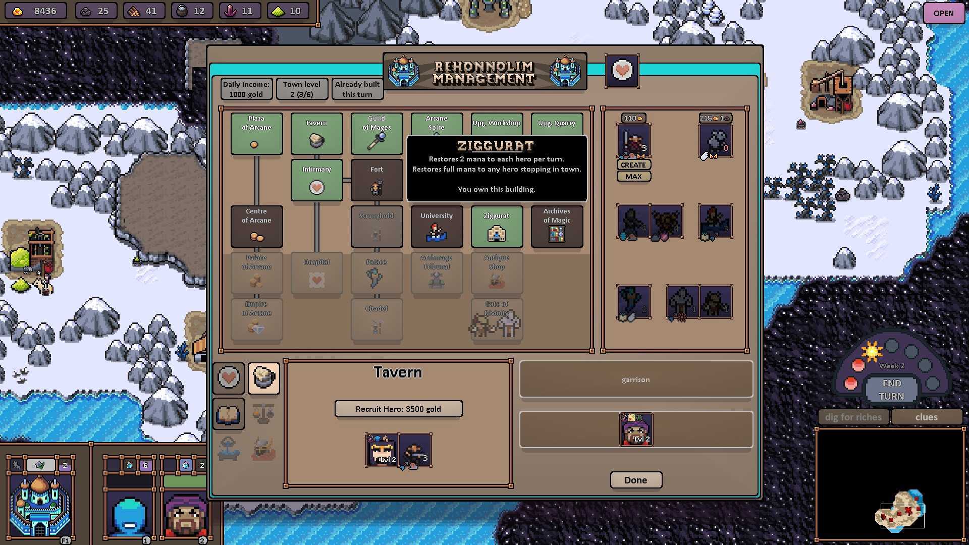 Здания, в которых можно нанимать бойцов, дают доступ к определённому числу этих бойцов, которое можно нанять один раз в неделю. Традиционной фишки с «астрологи объявили неделю такого-то юнита» замечено не было.