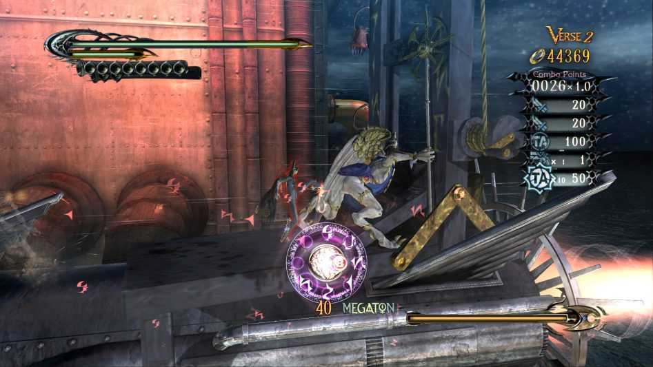 Более того, вскоре после начала Bayonetta даже на среднем уровне сложности оборачивается неожиданно крепким челленджем, для преодоления которого требуется постоянно оттачивать собственное мастерство. Если первые уровни проходятся бездумным затыкиванием редких врагов, то чуть позднее без стройной логики действий никуда. Нужно учиться связывать удары в изящные комбо, рассчитывать тайминги и вовремя уклоняться от атак, активируя фирменное замедление времени.