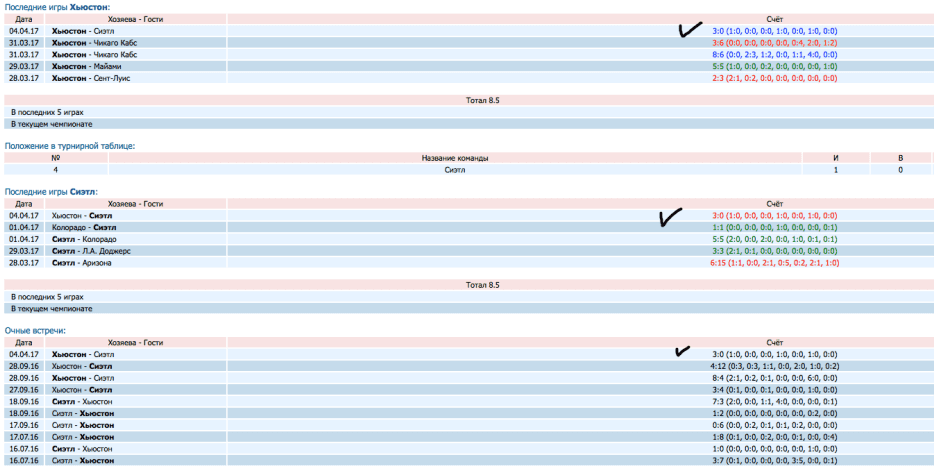 Находим матч (только на myscore, Бетсити не показывает этот параметр), где какая-либо команда сыграла свою прошлую встречу вничью (был экстра иннинг), либо их очная встреча была сыграна вничью, и ставим: «Экстра иннинг – нет».