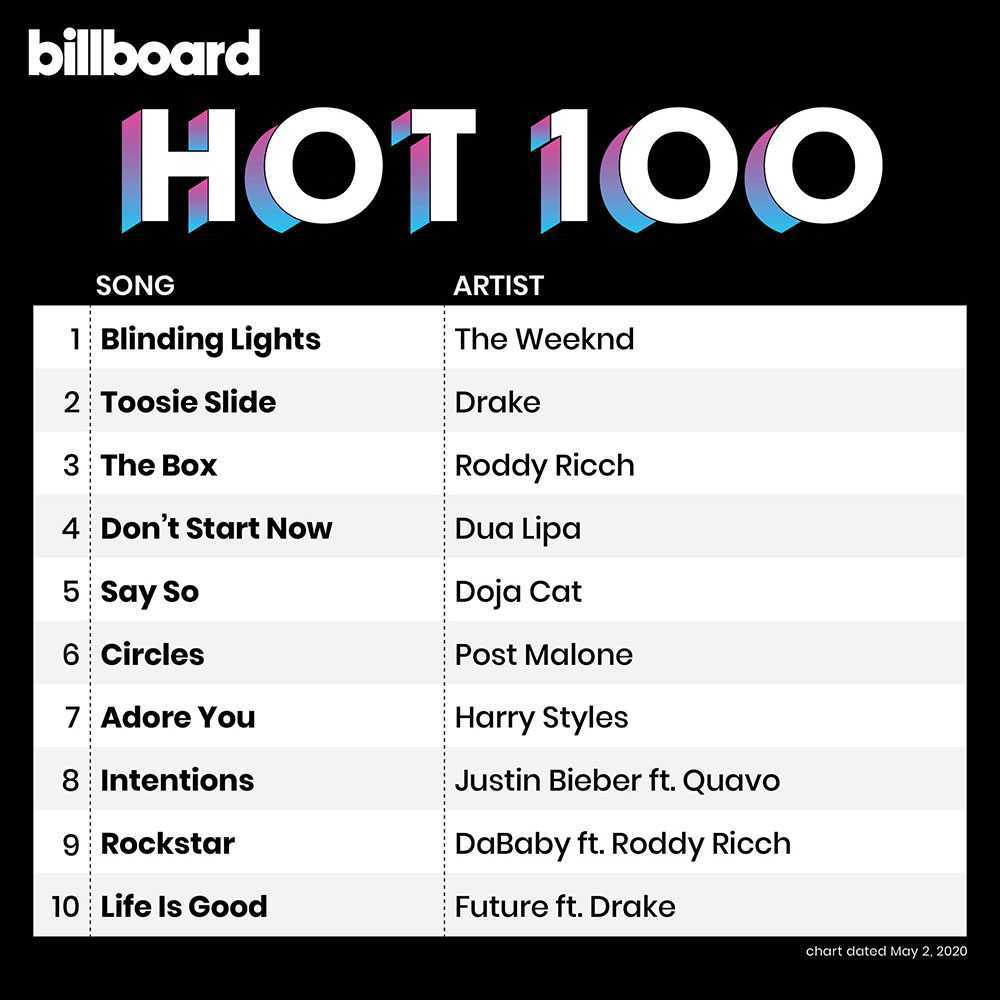Десятка чарта Billboard Hot 100/ Twitter/ @billboardcharts