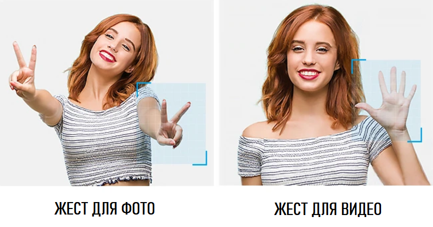 - Демонстрируете дрону жест «V (Victory) или High five» и отсчитываете 3 секунды, после чего будет сделано фото или запустится процесс видеосъёмки.