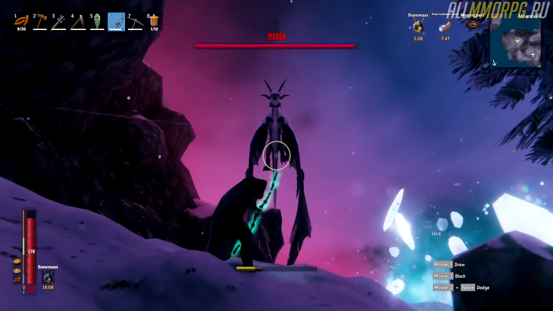 Битва с Моудер основывается на постоянном уклонении от атак дракона. Избегайте способностей босса, которые применяются в воздухе, и уворачивайтесь от рывка монстра на земле.