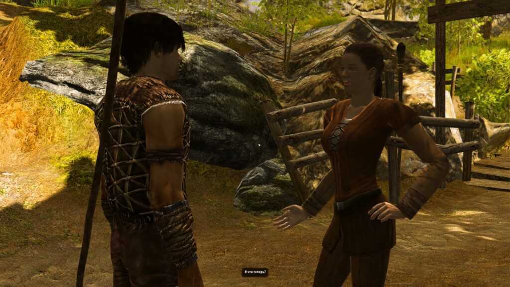 Но самое печальное — «эффект тропинок». Почти все квестовые персонажи, предметы или противники располагаются либо на тропинках, либо в пещерах, куда эти тропинки ведут. То есть шататься по тем самым холмам и буеракам вообще нет никакого резона. Наставников в игре большее нет, прокачивать небольшой набор навыков (ближний бой, стрельба и три вида магии) за счет очков умений можно в любой момент времени. Отсутствует необходимость даже искать костры для жарки мяса: достаточно выучить рецепт, чтобы получить возможность коптить окорока прямо в рюкзаке. В том же рюкзаке можно ковать оружие и готовить зелья.