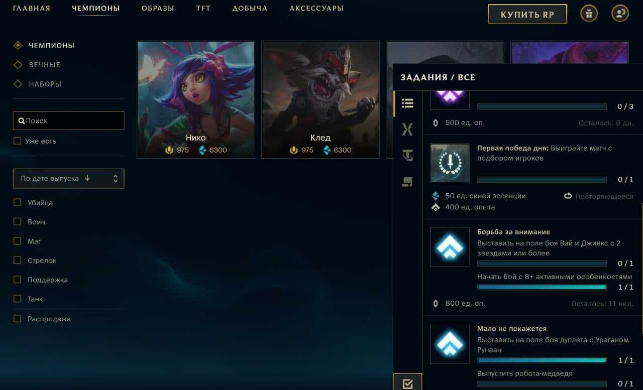 В Лиге 140 чемпионов, но бесплатных среди них нет. Около 10 чемпионов получают за прохождение ежедневных заданий в самом начале игры. Остальные чемпионы продаются за синюю эссенцию, но есть способ сэкономить – в игре за каждый уровень дают 1 хекстековый сундук. Из него выпадают осколки чемпионов, что помогает сэкономить на покупке персонажа в 2-3 раза.