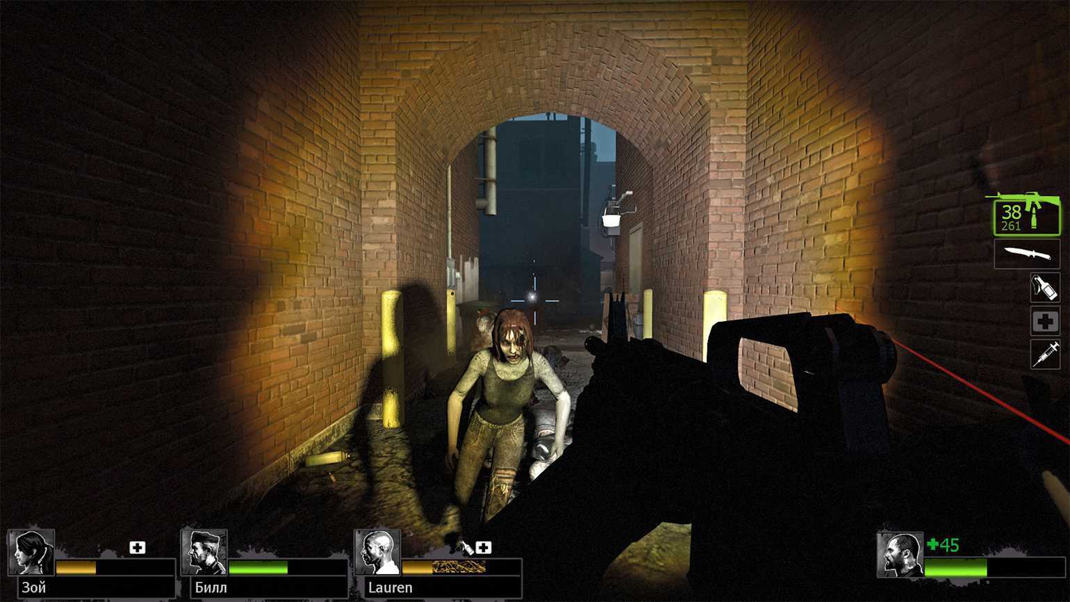 - Кооператив — главной фишкой экшена стало именно командное противостояние зомби по сети, поэтому этот режим очень популярен. В компании из четырех игроков проходить уровни куда интересней чем с ботами.