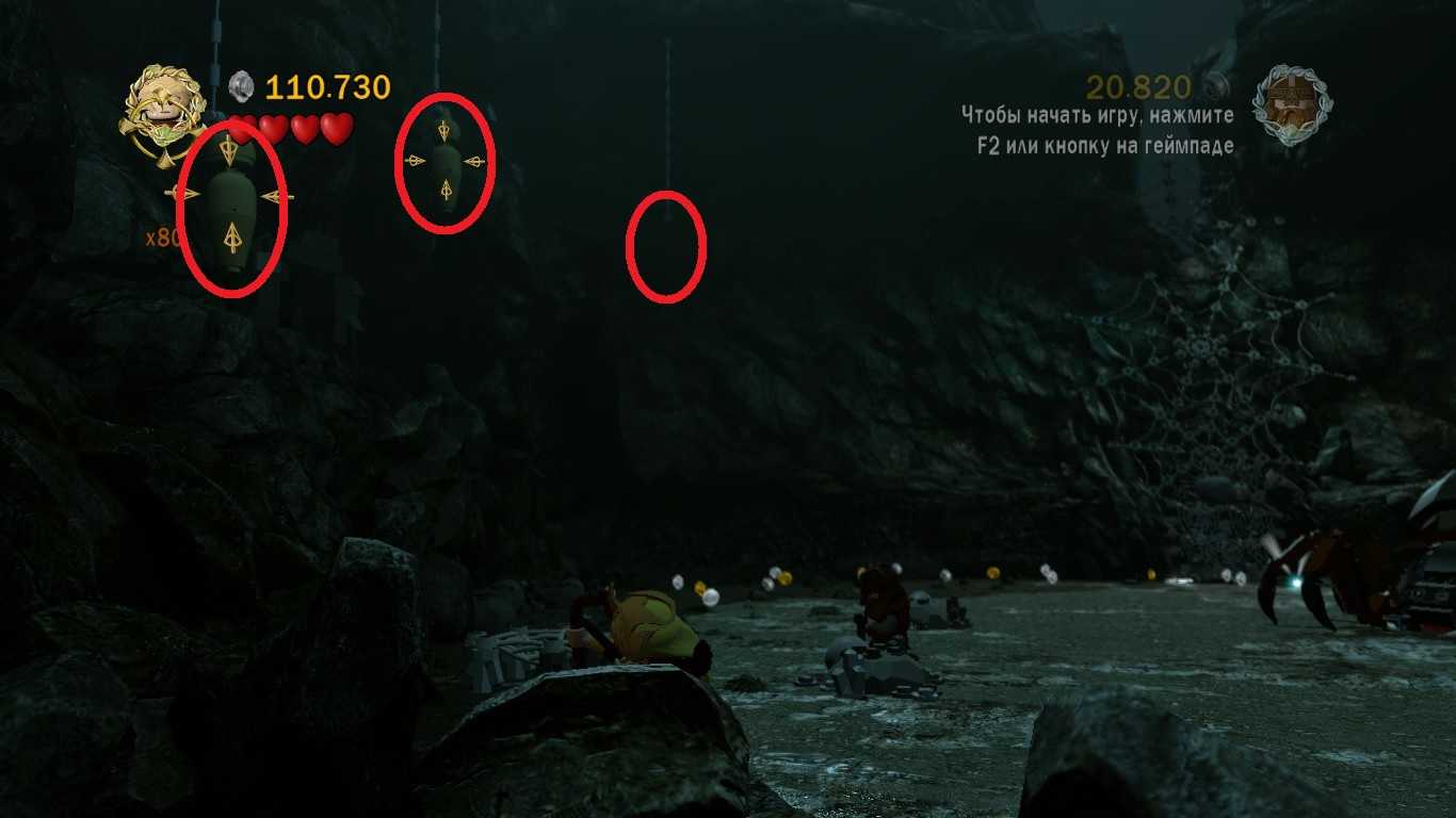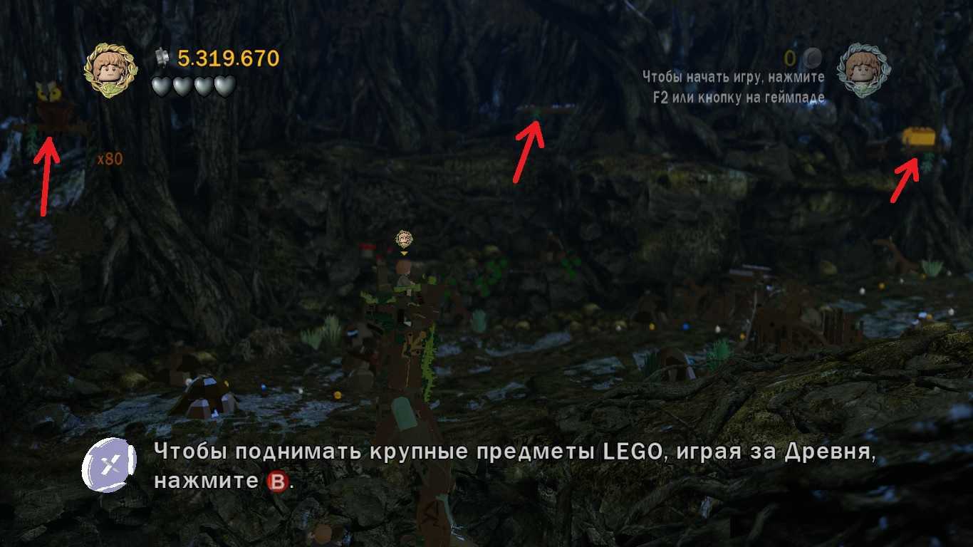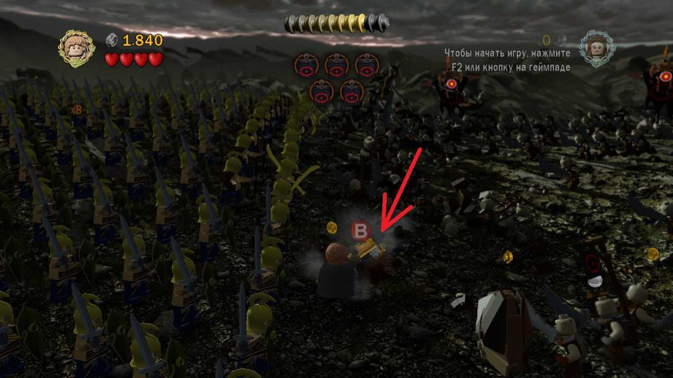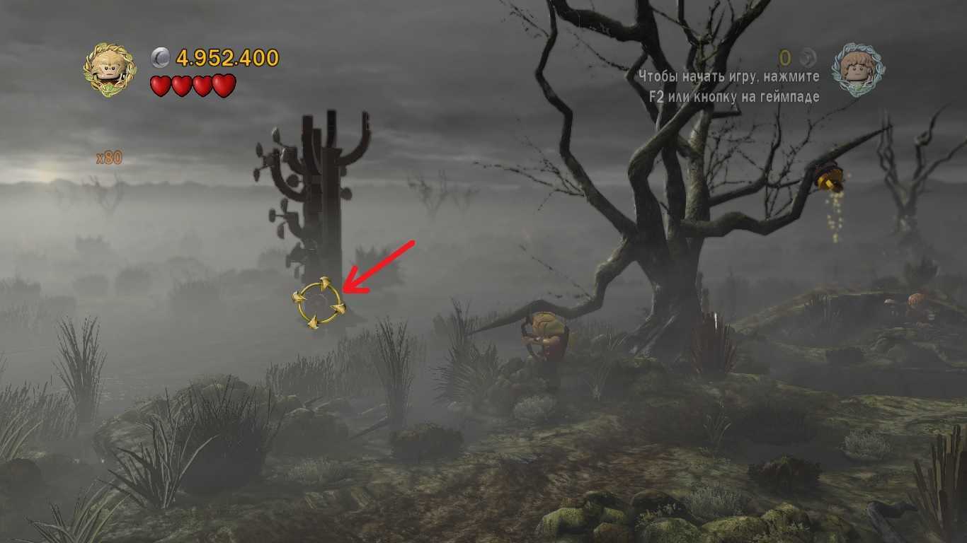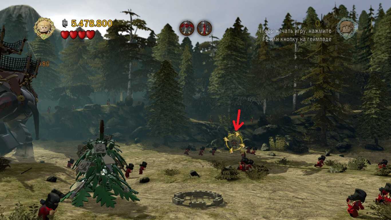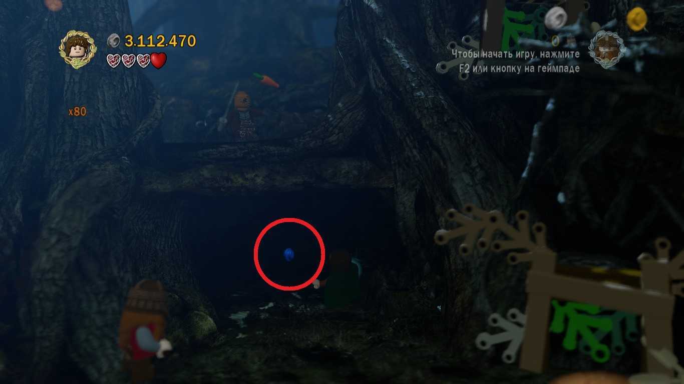 Во время битвы с Сауроном, разбиваем серебряные блоки, используя бомбы Берсерка, и мы получим первое сокровище.