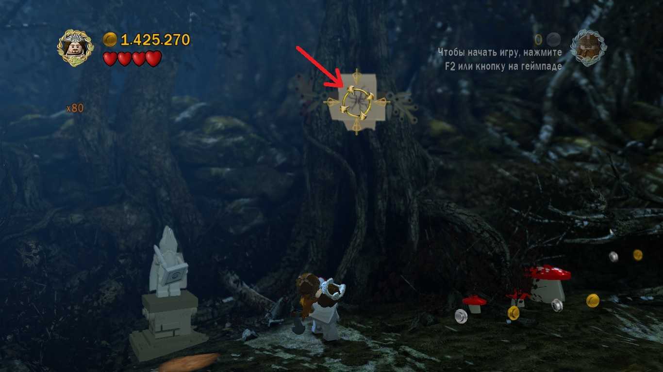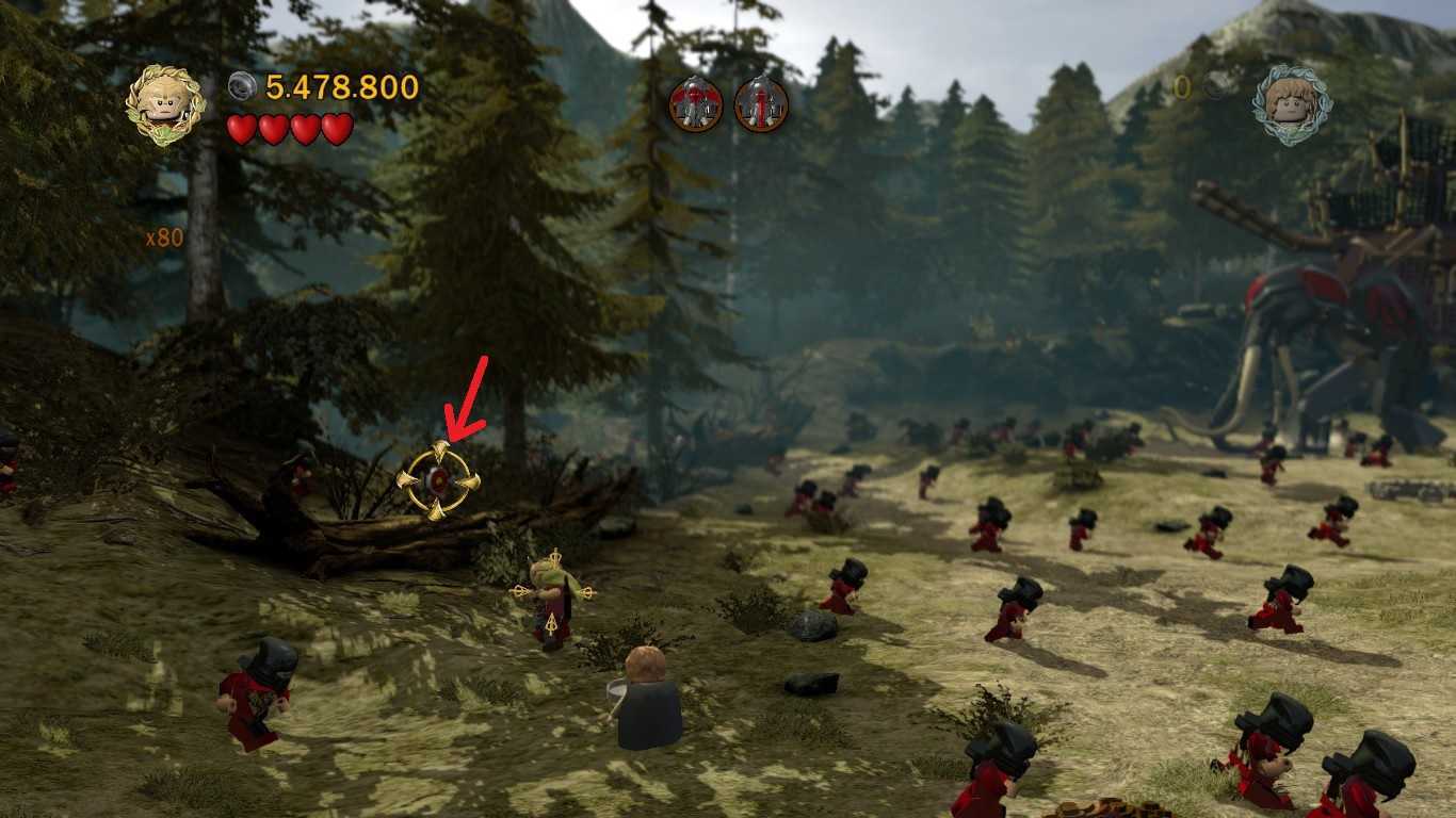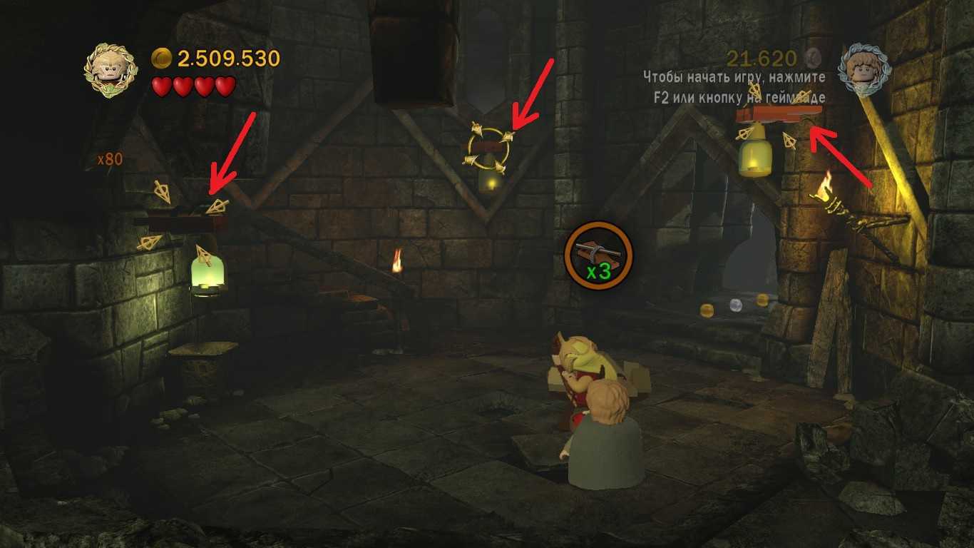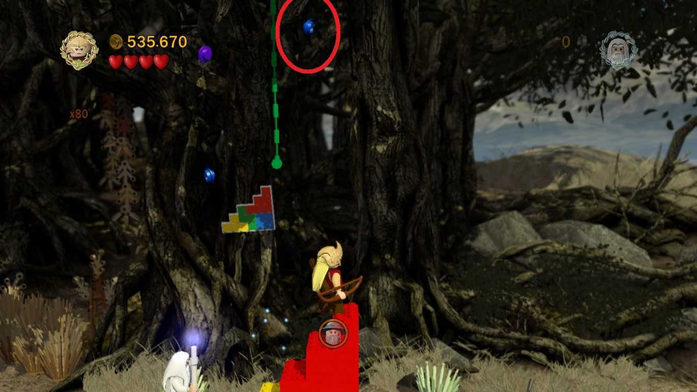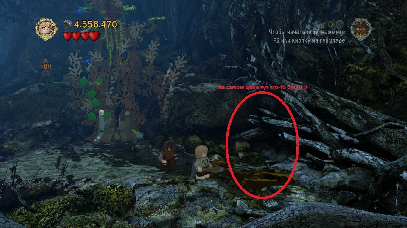 Во время битвы с Сауроном, разбиваем серебряные блоки, используя бомбы Берсерка, и мы получим первое сокровище.