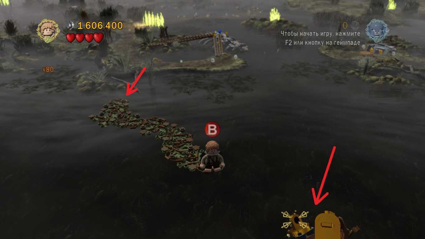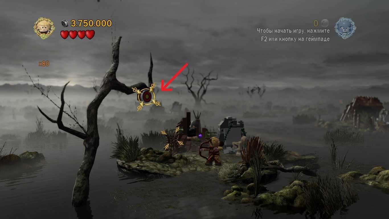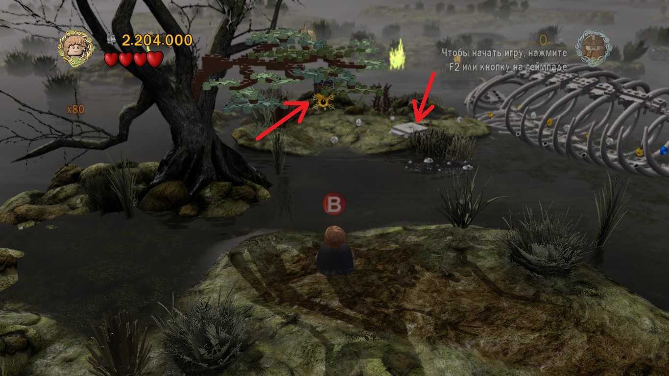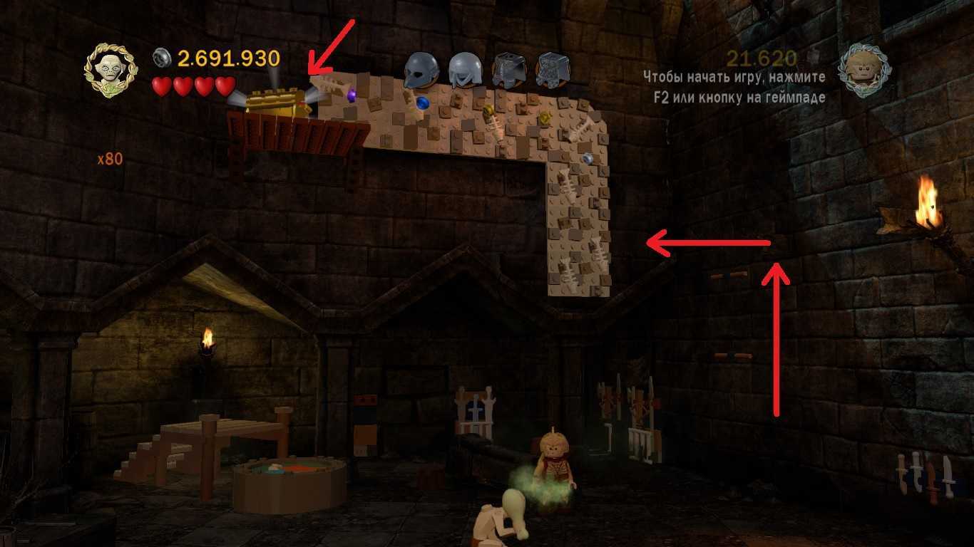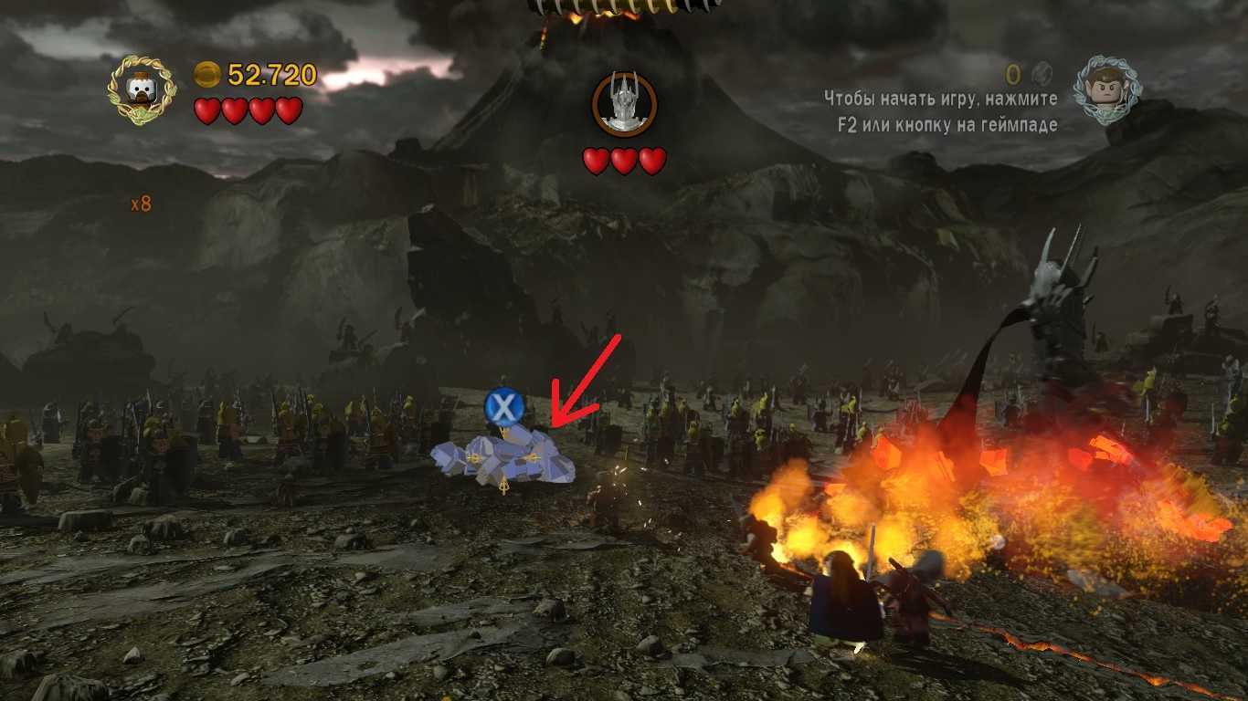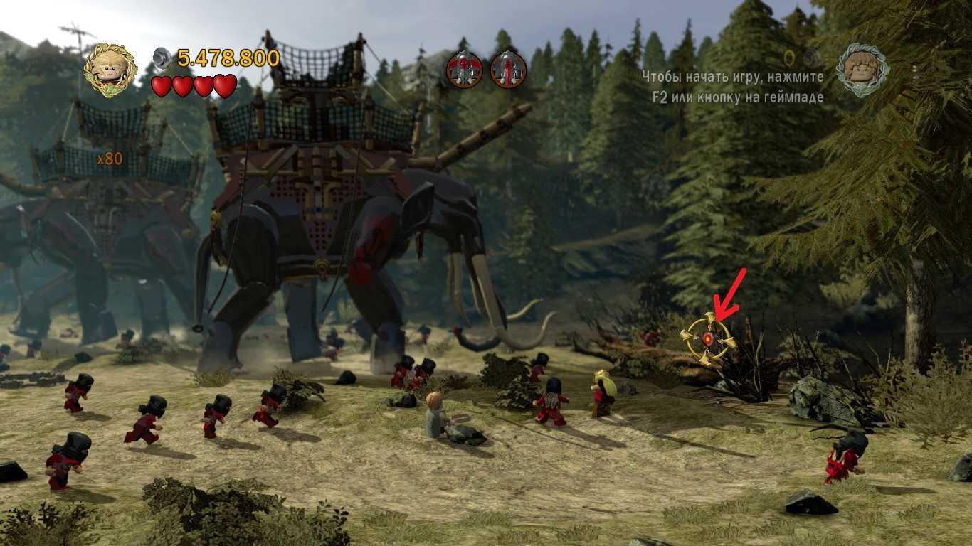 Во время битвы с Сауроном, разбиваем серебряные блоки, используя бомбы Берсерка, и мы получим первое сокровище.