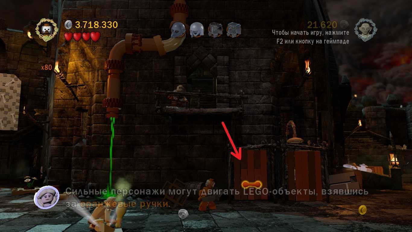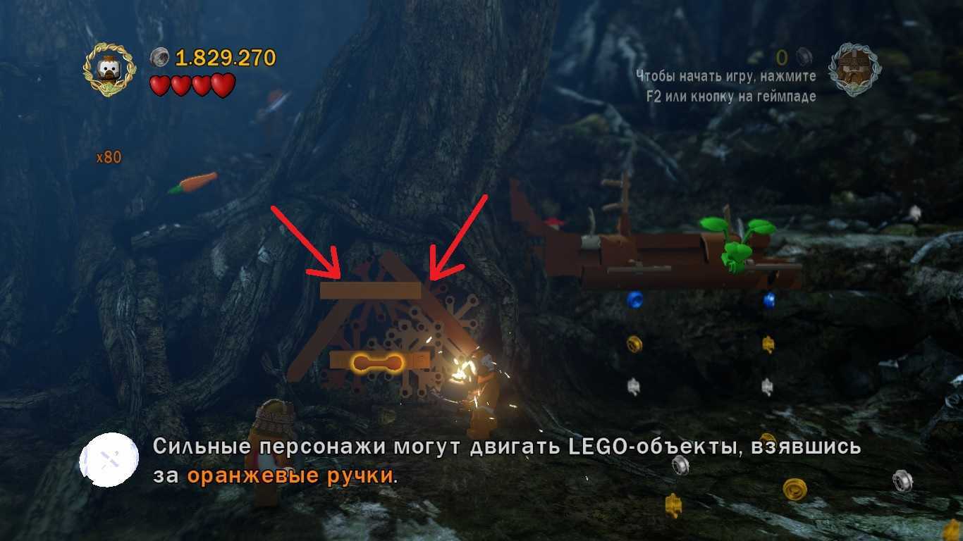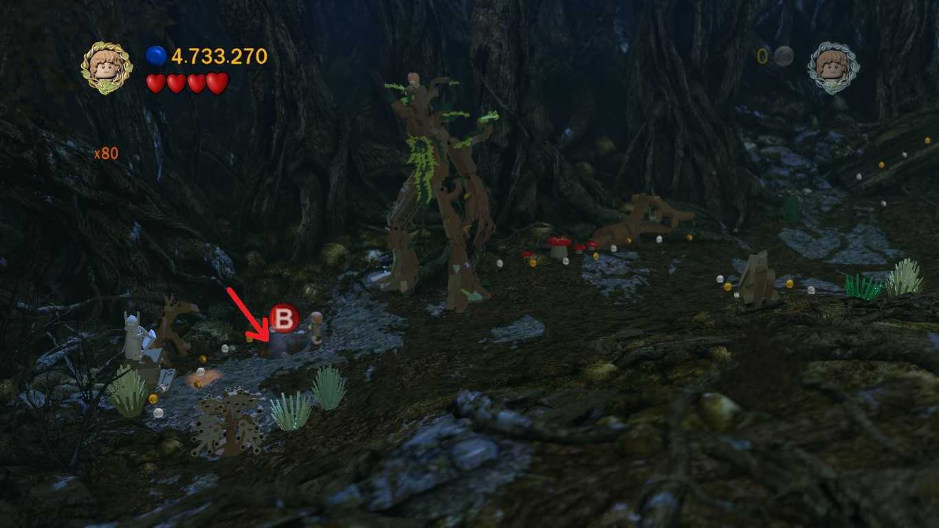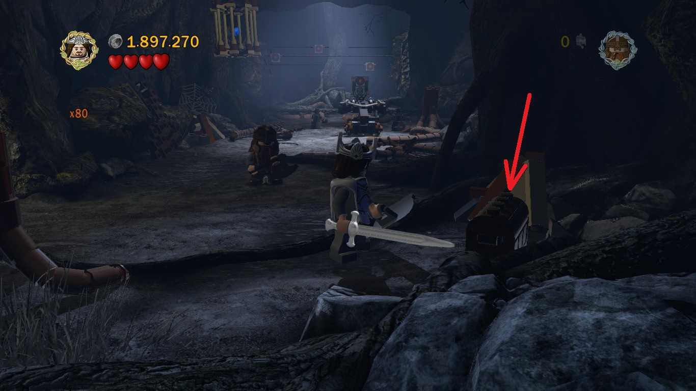 Там, где нужно сдвинуть огромный блок, чтобы пройти дальше, за нами вновь окажутся блоки, которые можно разбить, используя меч Арагорна. И не просто можно, а нужно, если мы хотим получить седьмой мини-кит.