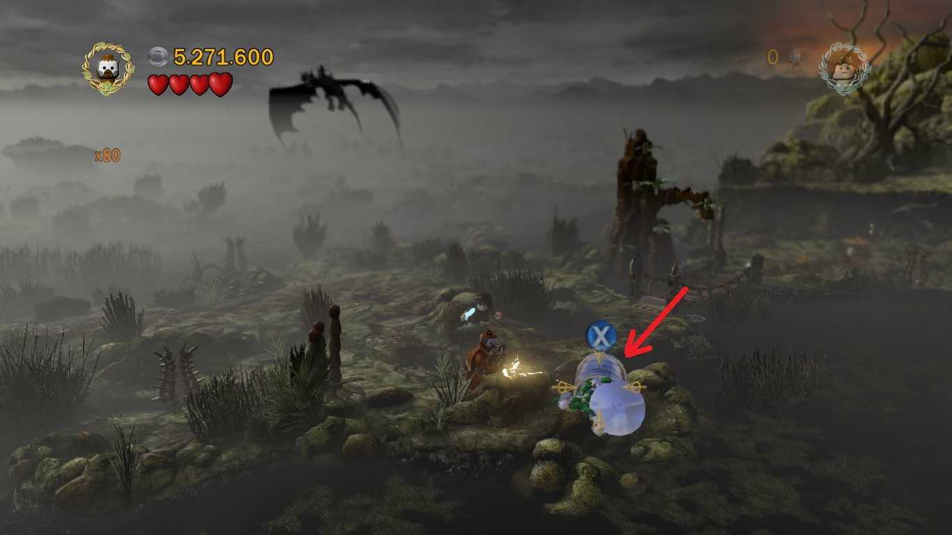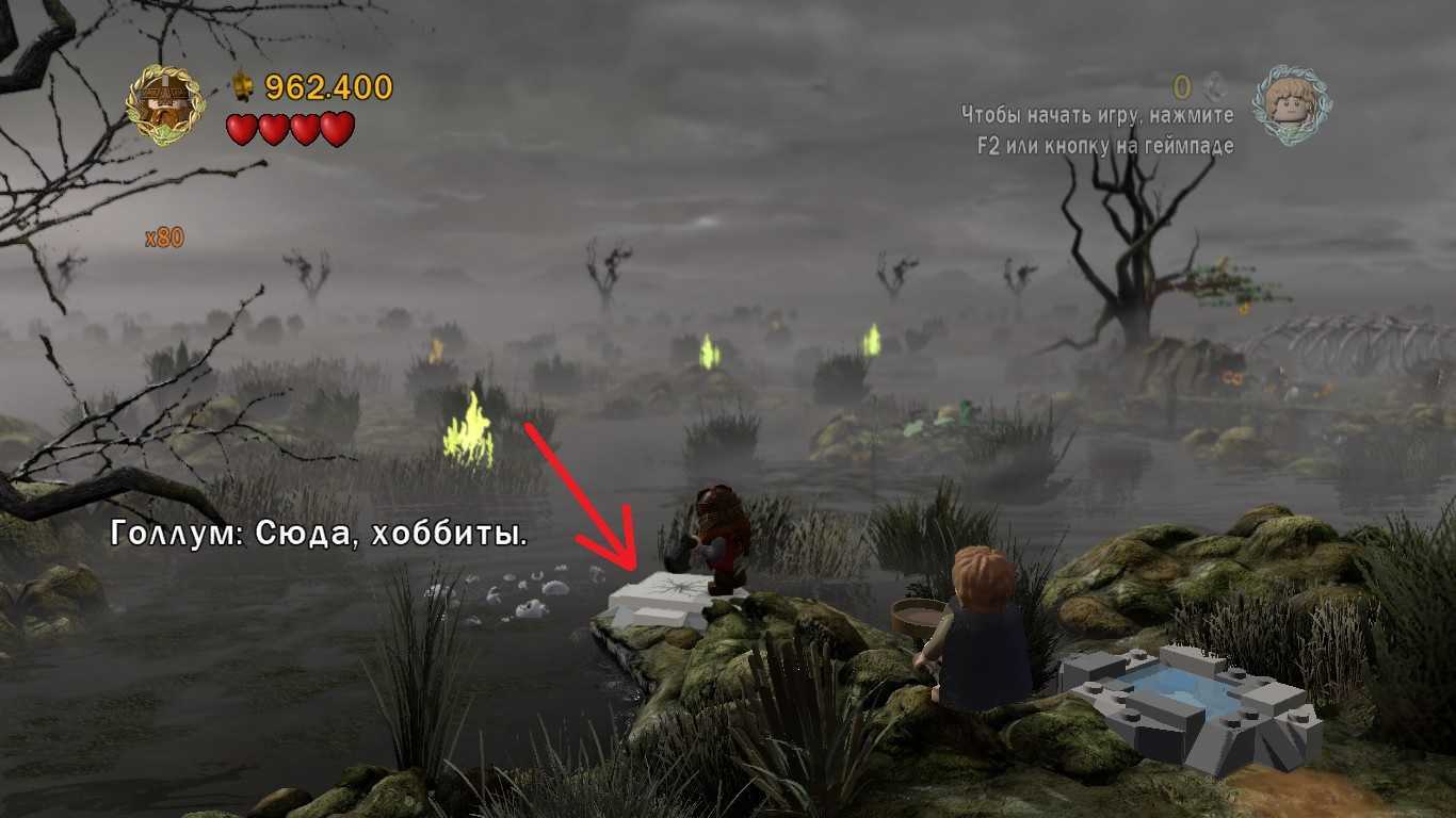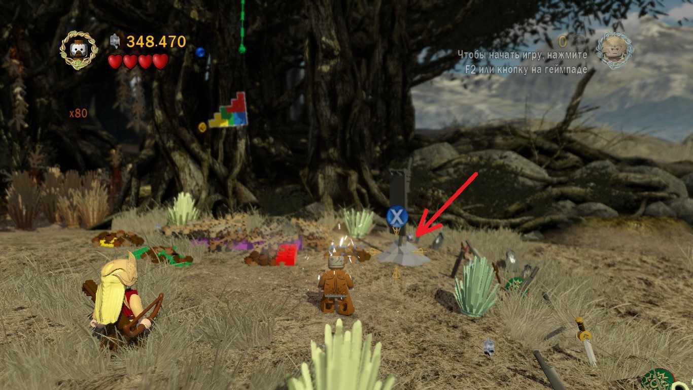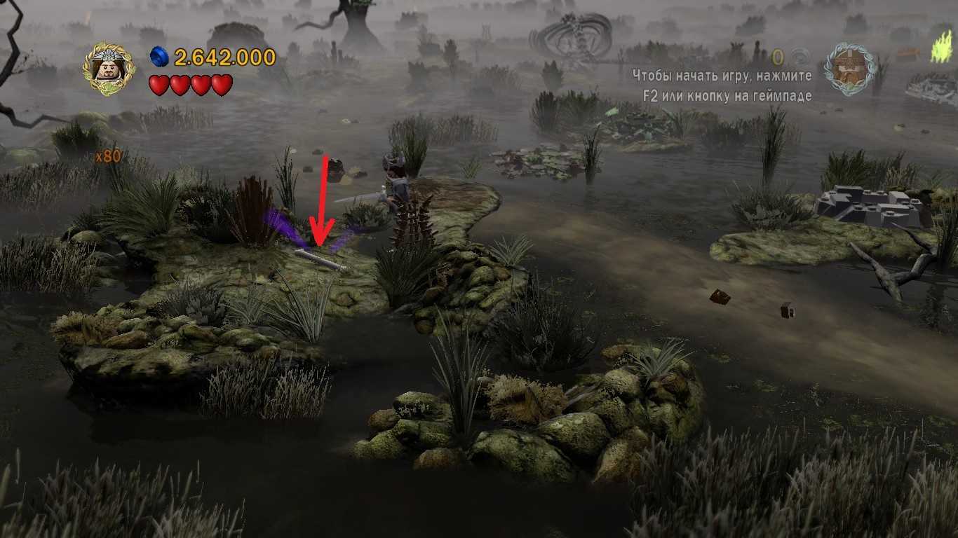 Там, где нужно сдвинуть огромный блок, чтобы пройти дальше, за нами вновь окажутся блоки, которые можно разбить, используя меч Арагорна. И не просто можно, а нужно, если мы хотим получить седьмой мини-кит.