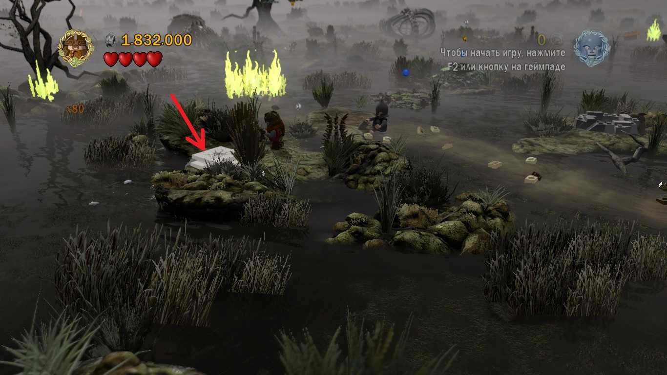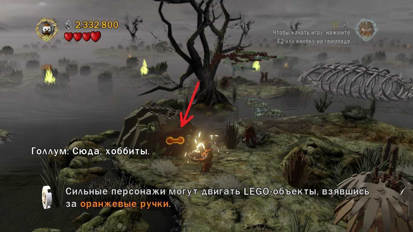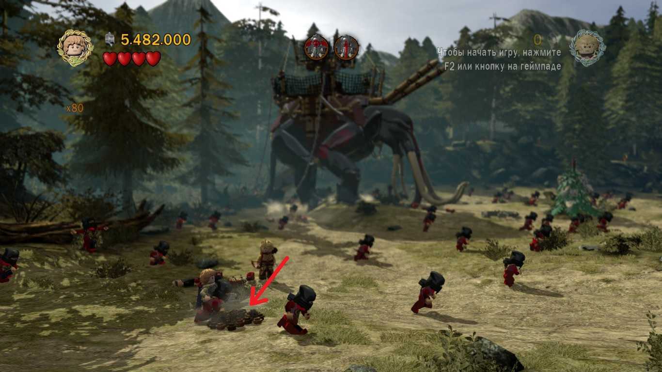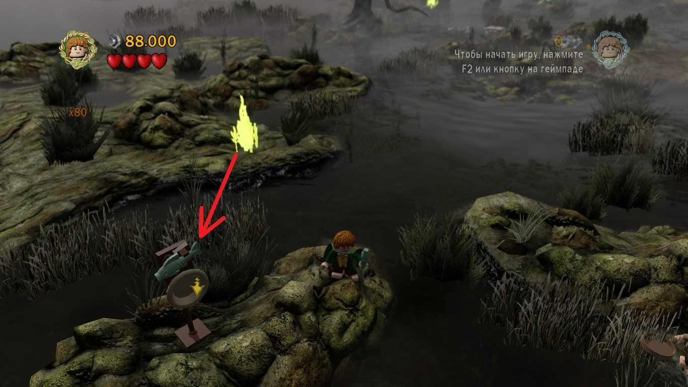 Там, где нужно сдвинуть огромный блок, чтобы пройти дальше, за нами вновь окажутся блоки, которые можно разбить, используя меч Арагорна. И не просто можно, а нужно, если мы хотим получить седьмой мини-кит.