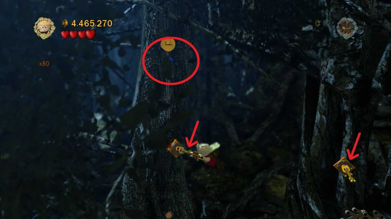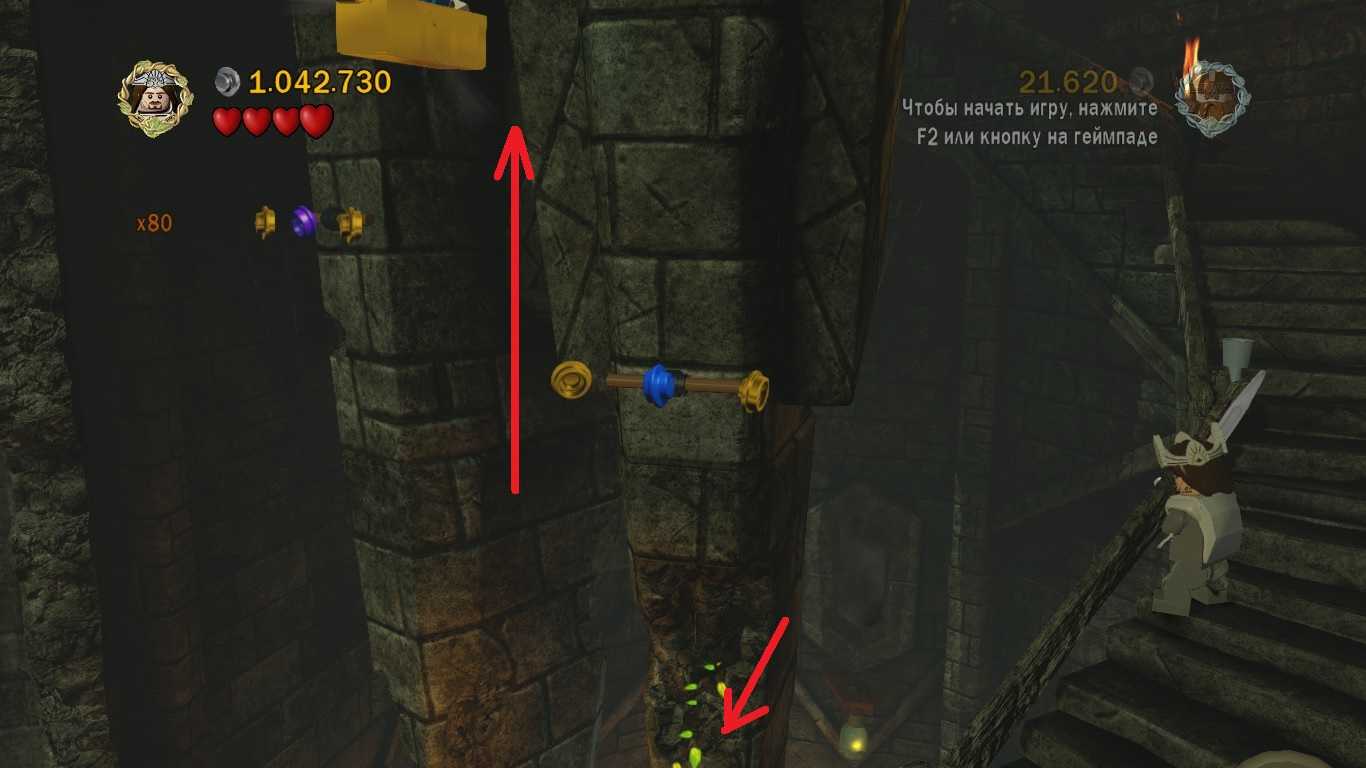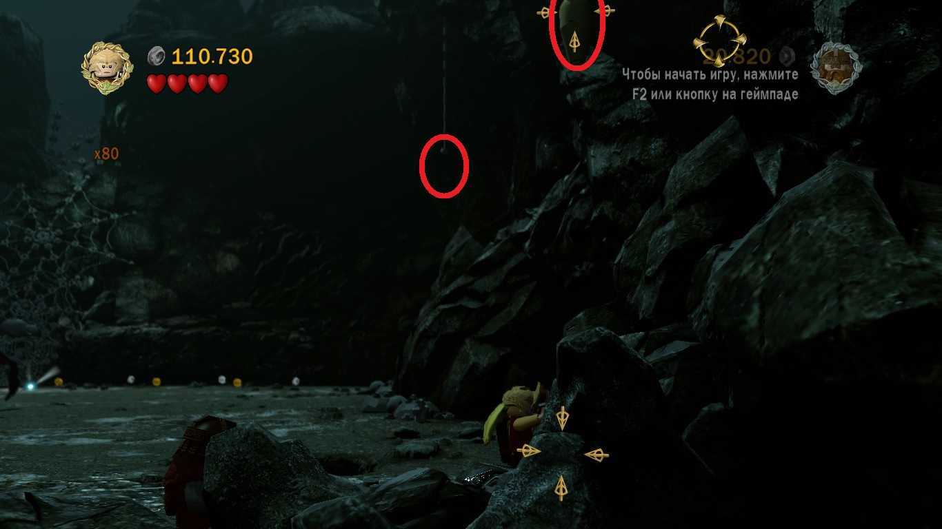 Забираемся по перекладинам, а затем по стенке для Голлума за шестым мини-китом.