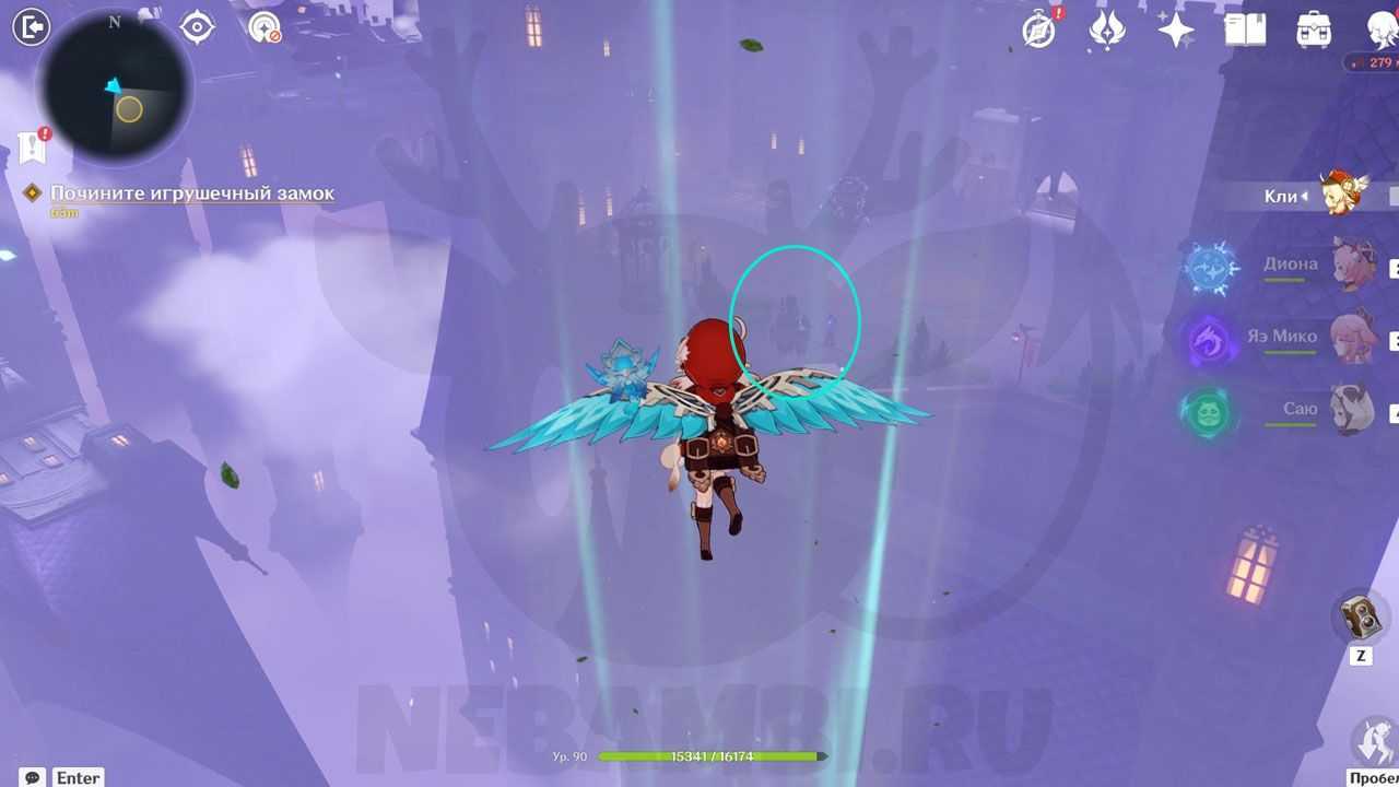 Теперь прыгаем в появившийся поток ветра и летим до игрушечного замка.