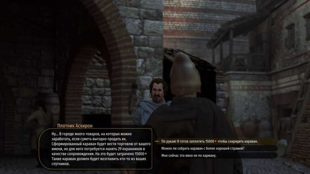 За 15 тысяч. в любом городе можно снарядить караван, который будет торговать от имени героя и приносить пассивный доход. Однако караван должен возглавить спутник протагониста. Вот почему назначать компаньонов на должности в отряде невыгодно. По крайней мере, первые 20-30 часов в игре…