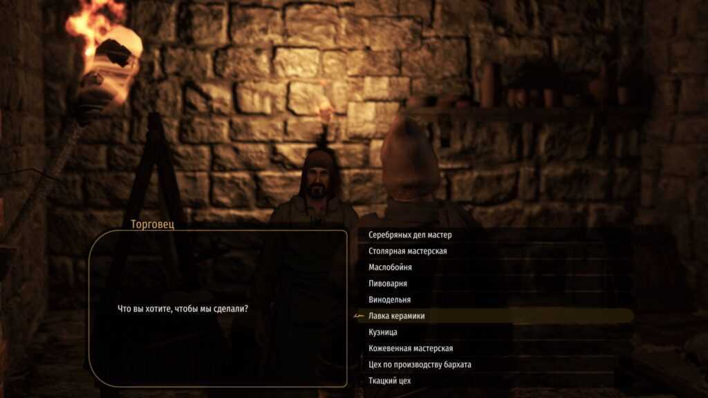 Помимо караванов в городах также можно купить до 3-х мастерских различного направления. Стоят они порядка 13-15 тыс. динаров. Одни ткут полотно из льна, другие – куют оружие из металла, третьи – давят масло из оливок. Нужно смотреть на рынке, какое сырье изобилует в городе, и на основе этого выбирать тип производства, чтобы получить максимальную прибыль. Количество мастерских ограничено и зависит от уровня клана.