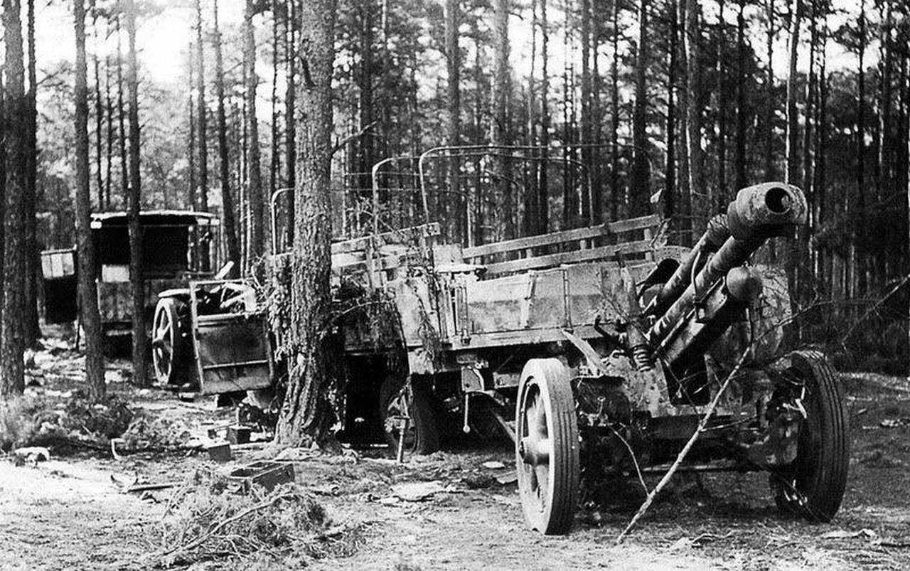 Они не прошли ни под Москвой, ни под Берлином: колонна была накрыта огнём советской тяжёлой артиллерии.