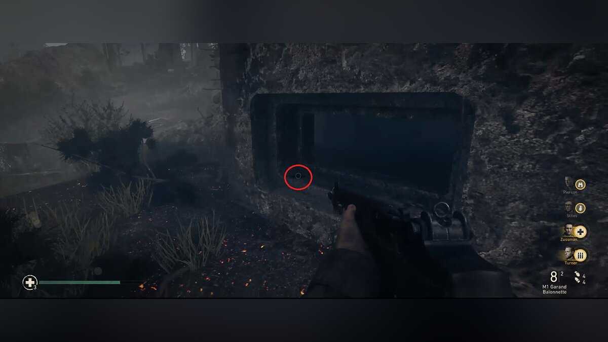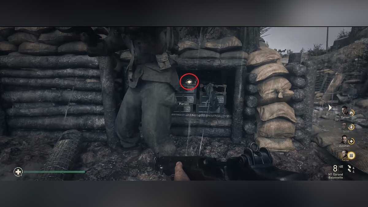 Как только вы покинете пляж и окажетесь в бункерах, ищите американского солдата (рядового Рю), зажатого немцем во втором бункере, в который вы войдете. Спасите американца любым способом, чтобы получить первое героическое действие.