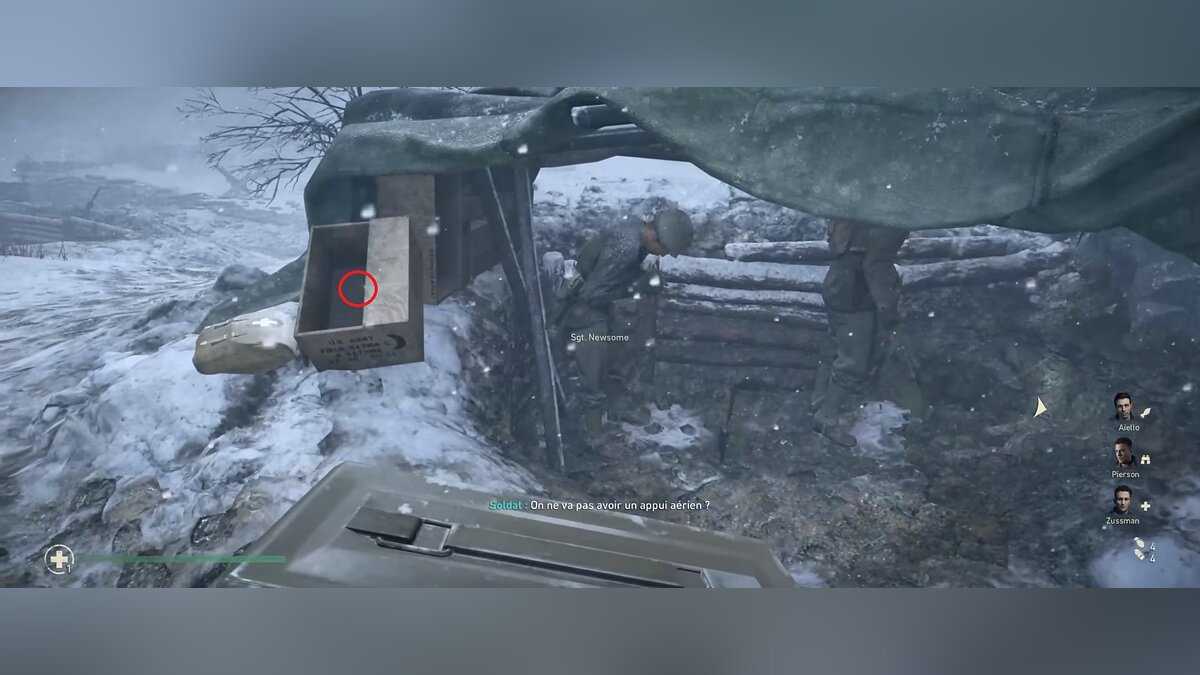 Сувенир №17 — Портсигар (Cigarette Box). Когда вы попадете в дом, где можно будет совершить подвиг (спасти товарища от нациста). Нам нужно попасть на второй этаж через отверстие в потолке, забравшись по насыпи из остатков деревянных конструкций. Сам сувенир лежит в дальнем конце этаже, куда мы должны добраться по обломкам.