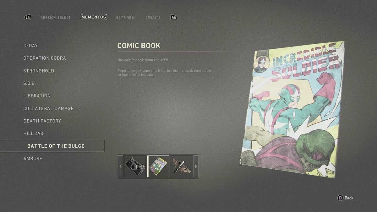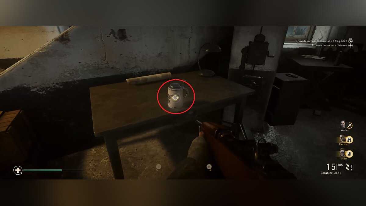 Сувенир №27 — Американская медаль особый знак, выпускаемый в память о каком-либо событии, по случаю юбилейных дат и прочим, награда за военные заслуги, трудовые отличия, достижения в области науки, техники, (US Metal Wings). Когда вам поставят задачу защищать позицию от врагов, вы можете подняться на возвышенность, где находится ДЗОТ, покрытый камуфляжным брезентом. Здесь вы можете собрать не только аптечку, но и этот сувенир.