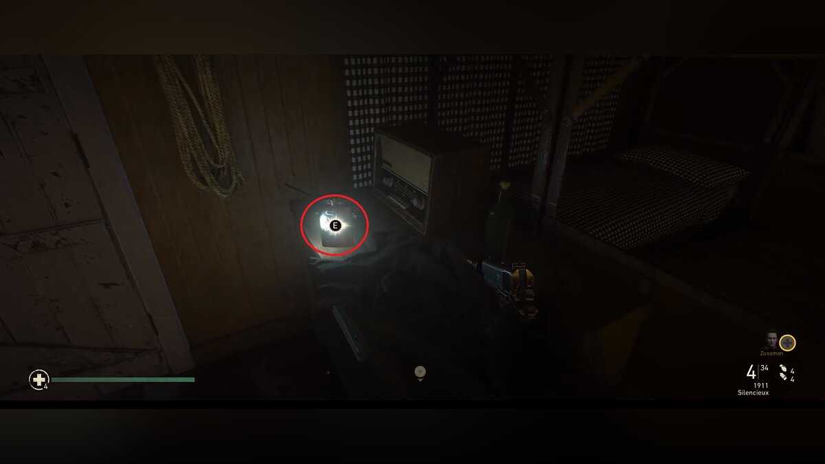 Вернитесь в главный зал и подойдите к офицеру. Вам нужно подняться наверх, поэтому поверните направо и поднимитесь по лестнице. Откройте замок, чтобы попасть в коридор и вернуться к лестнице, которая ведет в подвал — теперь просто поднимайтесь, а не спускайтесь. Поверните направо в открытый проход, затем снова направо. Когда вы повернетесь к главной комнате, на расстоянии справа — около шкафа — вы заметите свою цель.
