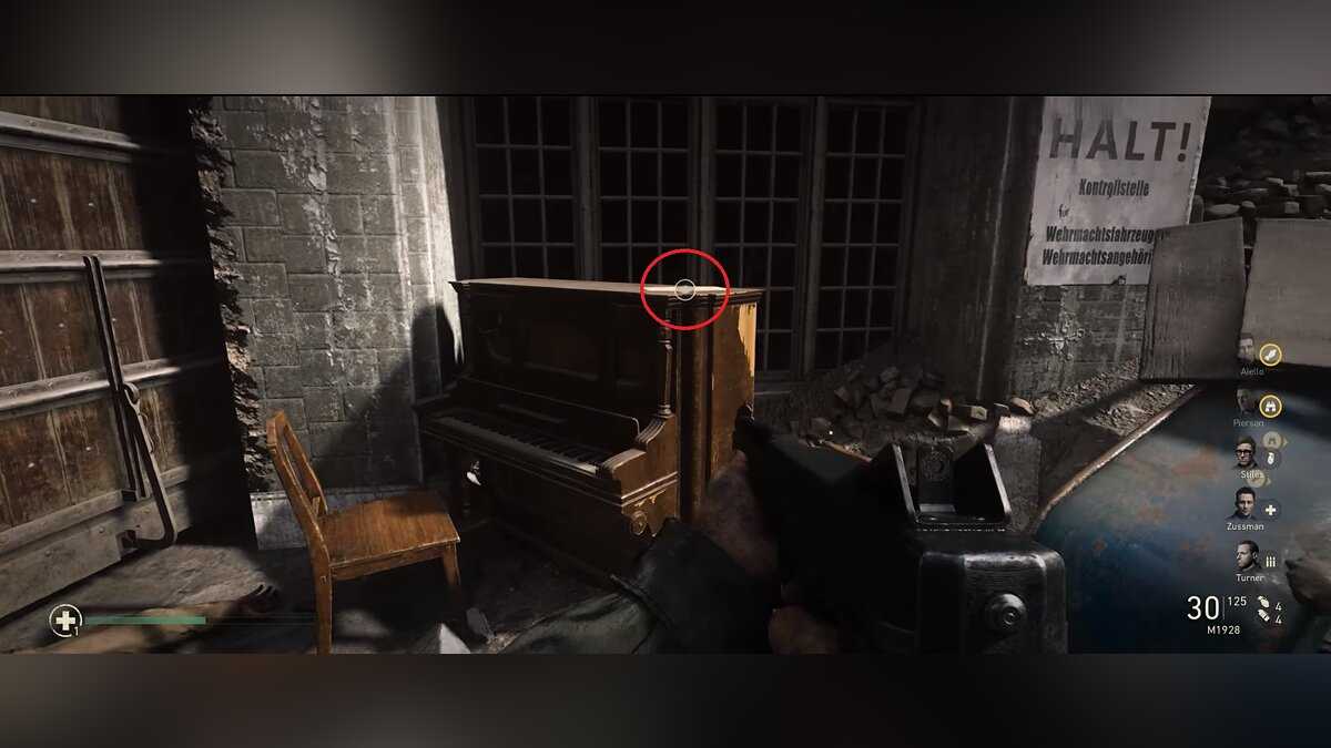 Сувенир №16 — Нотный стан (Music Sheet). После конца поездки на танке бронированная боевая машина, чаще всего на гусеничном ходу, как правило, с пушечным вооружением в полноповоротной башне в качестве основного орудия, как только вы снова будете бегать на своих двоих, то вы окажетесь на узкой улочке. Идите по ней и на первом же повороте поверните налево. Здесь на пианино струнно-клавишный музыкальный инструмент с ударным (молоточковым) способом звукоизвлечения, созданный специально для комнатного музицирования в небольших помещениях лежит ваш сувенир.