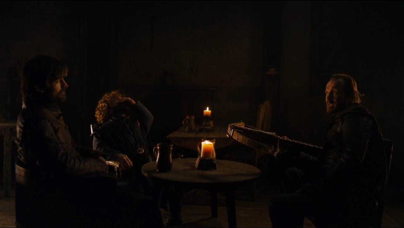 Еще немного милых семейных взаимоотношений нам показали старые добрые Ланнистеры. Уютные посиделки братьев нарушил привет от их любящей сестрички — Бронн с очень знакомым арбалетом. Но даже знаменитые родственные чувства Ланнистеров не могут сравниться с искренней, чистой, возвышенной любовью Бронна к деньгам. Так что уже через пару минут, кувшин вина и один сломанный нос Тириона Бронн уходит в закат, обогатившись обещанием получить Хайгарден в единоличное пользование в награду за предательство Серсеи.