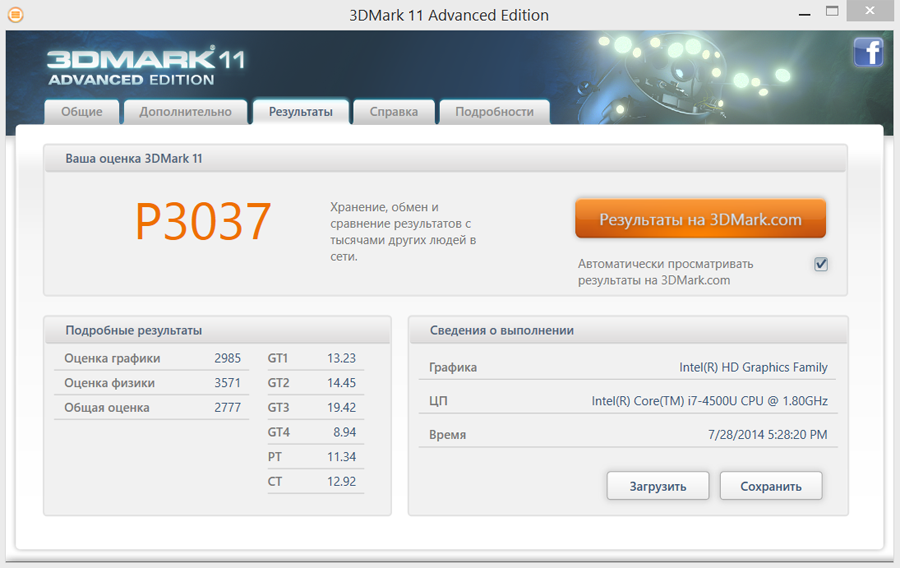 На тесте представлена топовая версия ноутбука (Intel Core i7, 16 Гб ОЗУ, HD8870m). Результаты синтетических тестов и игр представлены ниже.