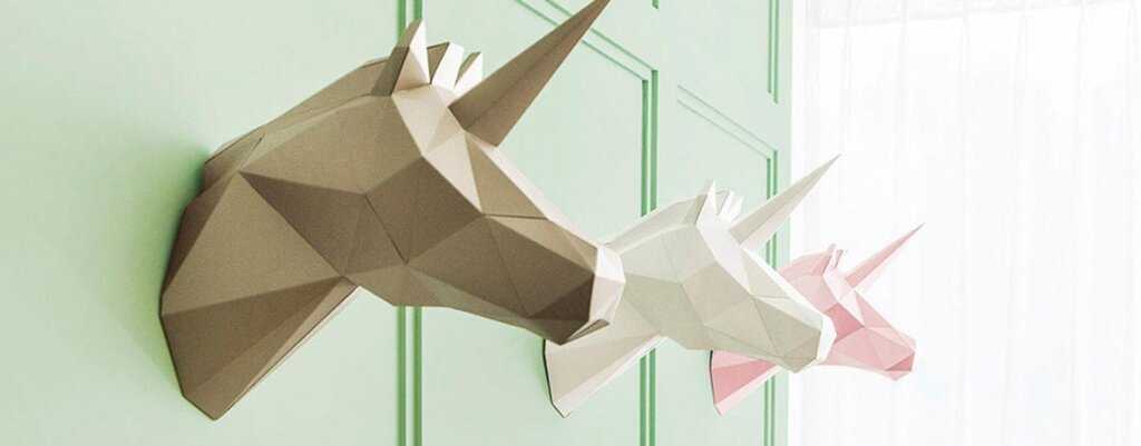 Узнаваемые головы единорогов составлены из более мелких простых элементов — плоских треугольников.