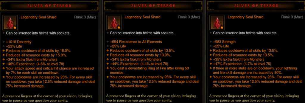 Sliver of Terror Shard — значительно увеличивает сопротивление, снижает время восстановления и затраты способностей.