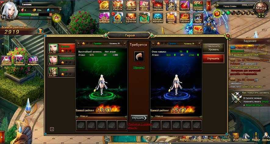Чтобы питомец перешел на следующий уровень, нужно заполнить шкалу до максимума. Для этого потребуются балены. Одна практика стоит 5 баленов. У питомца есть свой темп роста, который указывает шанс на успешную практику. Темп роста можно увидеть вверху справа.Для увеличения шанса успеха практики вам понадобятся камни удачи. Они бывают 4-х уровней и добавляют 10-40% к темпу роста. Камни удачи можно купить на распродаже, получить в колодце желаний или в событиях. Чтобы выбрать камень удачи, нужно нажать на квадрат (на картинке оранжевая сфера (камень удачи 4ур.)).