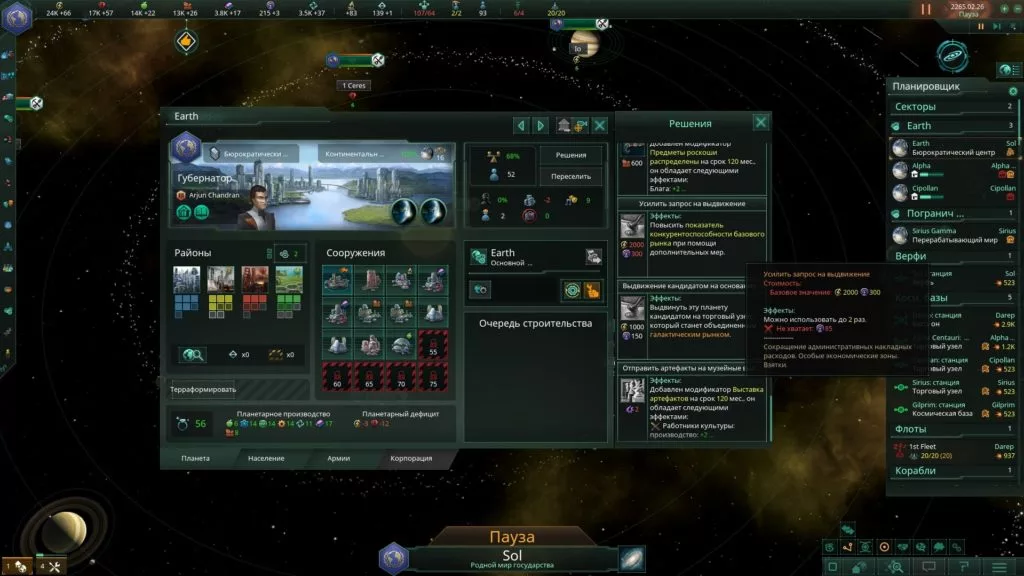 В отличие от других игр Paradox, здесь одна ошибка вряд ли обречет вашу миссию на провал – возможностей адаптироваться под меняющиеся политические условия обычно достаточно. И не сказать, что ради доступности игра пожертвовала глубиной: тут развитая система дипломатии и система галактических событий, которые могут кардинально изменить ход партии. Другими словами, игра не бездумная, но и совсем не статичная. При этом огромный фокус сделан именно на политике, так что такие детали как выбранная форма правления сказывается на развитии серьезнейшим образом.