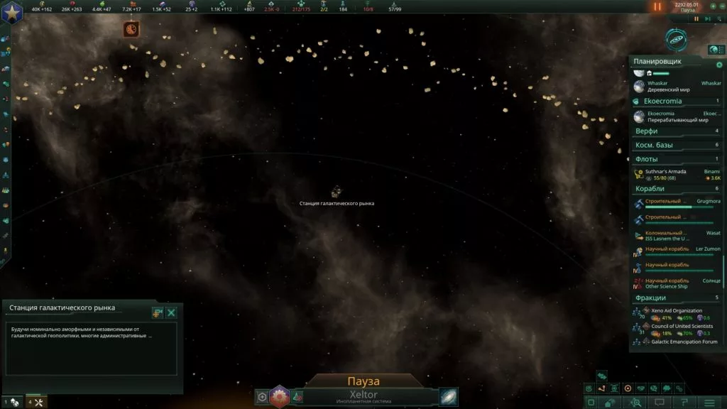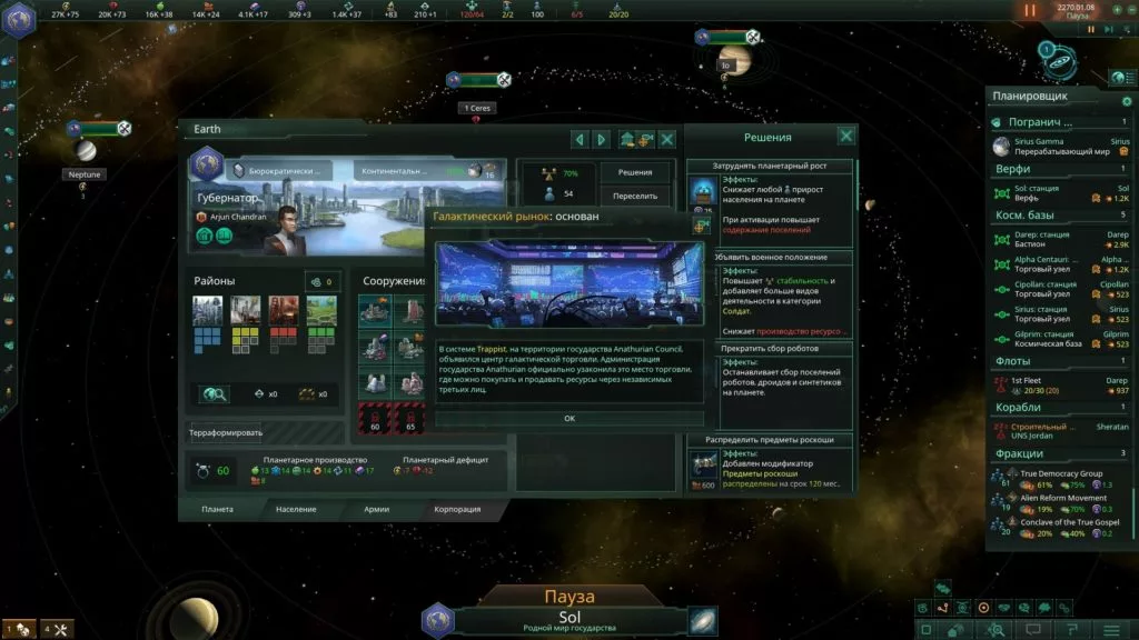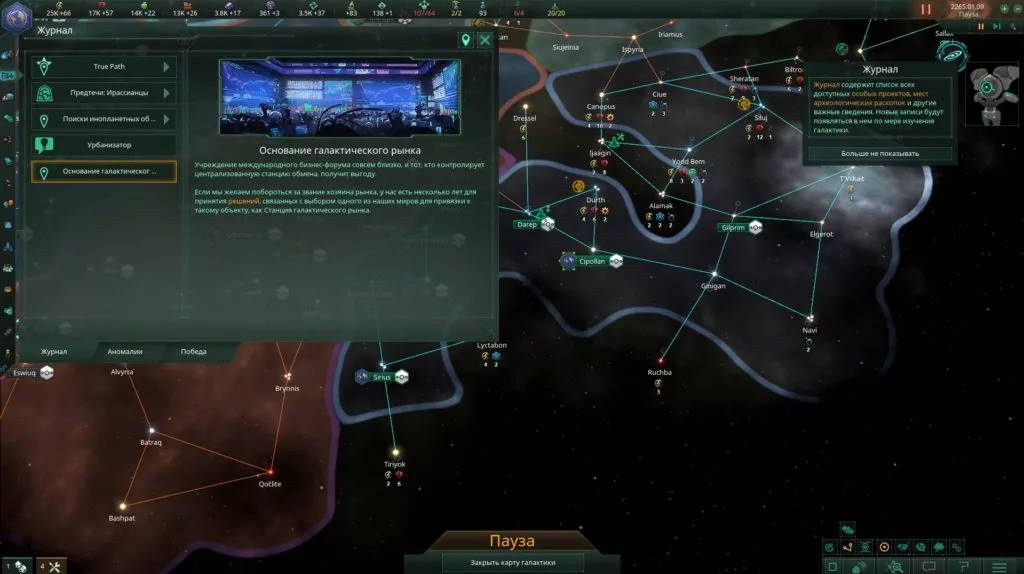 Помимо развития экономики, вам нужно накопить влияние, желательно 1000 единиц. При таком условии шансы основать галактический рынок в вашей империи высоки.