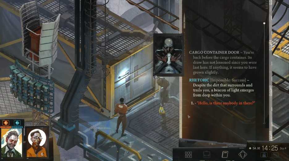 Ограничение по дням в Disco Elysium пугающее. Время пролетает гораздо быстрее, чем ожидаешь. Это может отбить у вас желание заглядывать в каждый уголок игры, который встречается на пути. Подобный подход в корне ошибочен. В Disco Elysium очень редко есть что-то, что в конечном итоге не будет полезным в той или иной степени. Сначала вы можете даже это не осознавать. Поэтому играйте неторопливо и вдумчиво, иначе рискуете потерять львиную долю очарования игры.