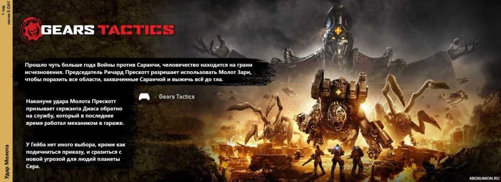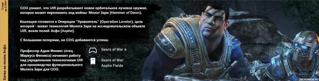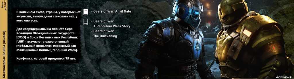 Это раздел можно считать центральным для основной номерной трилогии игр Gears of War от Epic Games, по той простой причине, так как именно с этой войны началась самая первая игра Gears of War на Xbox 360, когда ещё не было такой обширной вселенной. Брутальный кооперативный шутер с возможностью распиливать врагов пополам по праву стали одной из каноничных франшиз для консолей Xbox и постепенно стал развиваться до целой вселенной самых разных игр, каким мы его знаем сегодня. События Gears Tactics как раз развернутся в этот период.