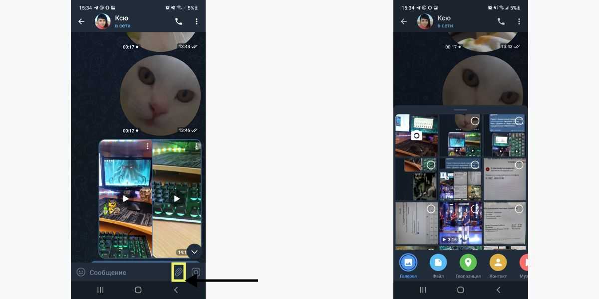 Так же легко поделиться с подписчиками и сохраненными ранее роликами. Просто нажимаете на значок скрепки и загружаете нужные видео из памяти смартфона.