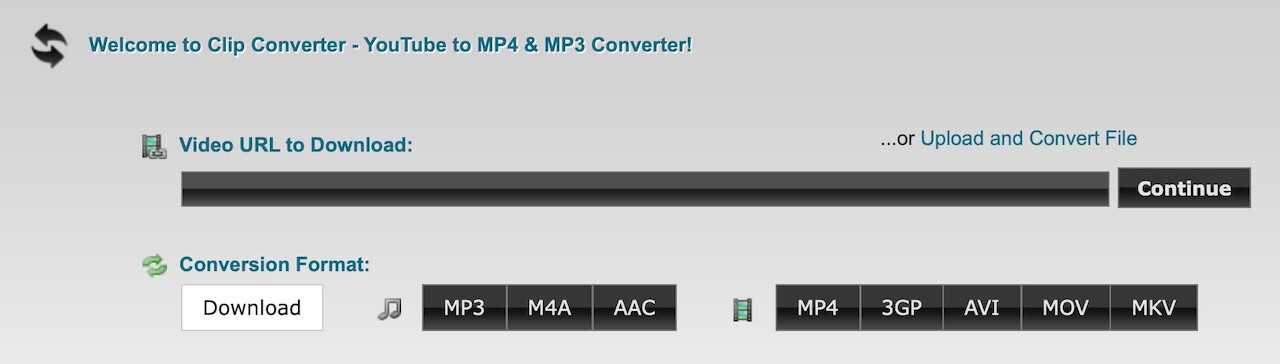 clipconverter.cc – Бесплатное онлайн-приложение для преобразования мультимедиа, которое позволяет повторно записывать, конвертировать и загружать почти любые аудио или видео URL в общие форматы.