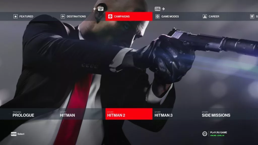 В разделе «кампании» выберете интересующую вас часть, но учтите, Хитман и Хитман 2 придется докупать отдельно!