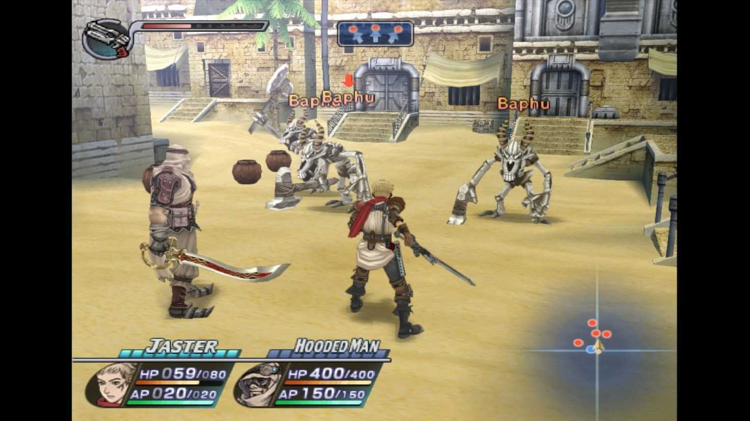 В Rogue Galaxy также стоит обратить внимание на систему боя, в которой игрок управляет сразу тремя героями. Хотя по существу он может переключить управление только на одного, но бьются все три