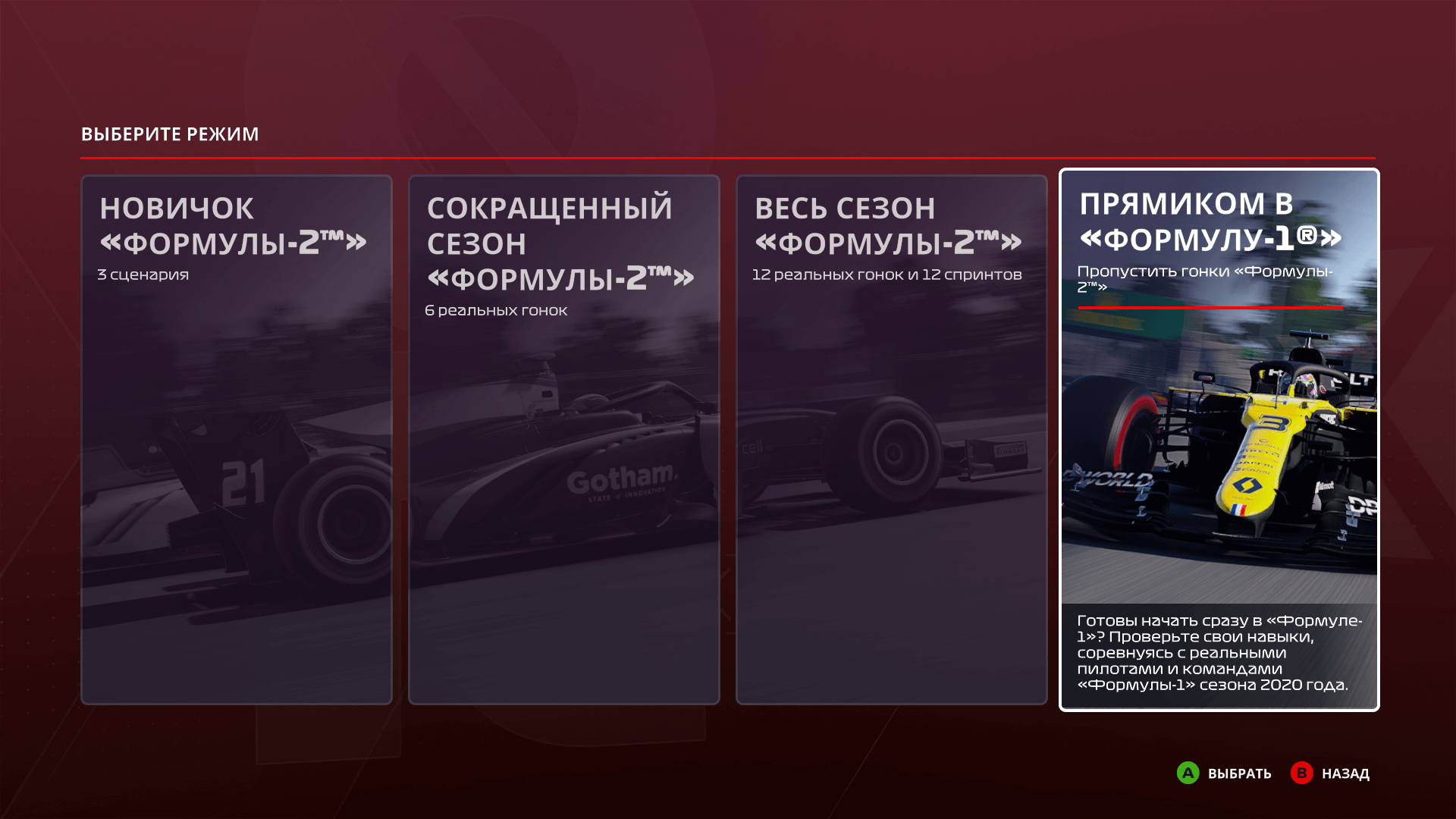 положением режима F1 Classic в самом верху меню. И… возможностью получить все