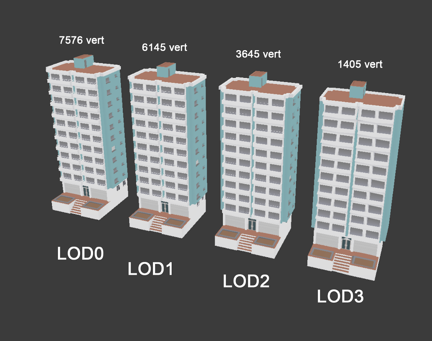 This blue tall rise building in the game was visible from lots of angles. It was prioritised to get more LOD levels than most other assets.