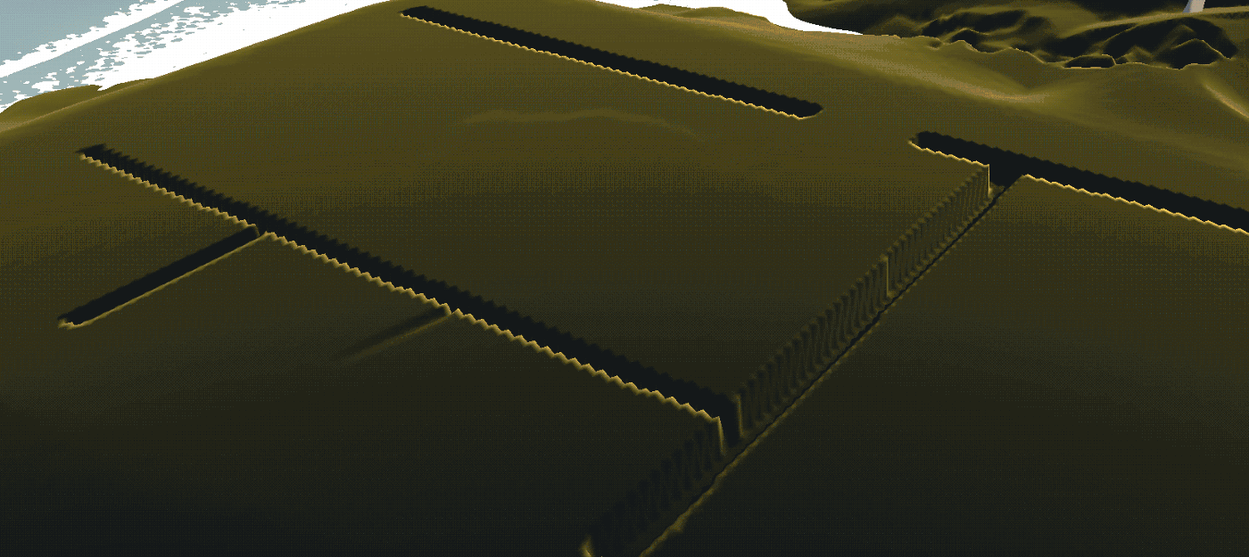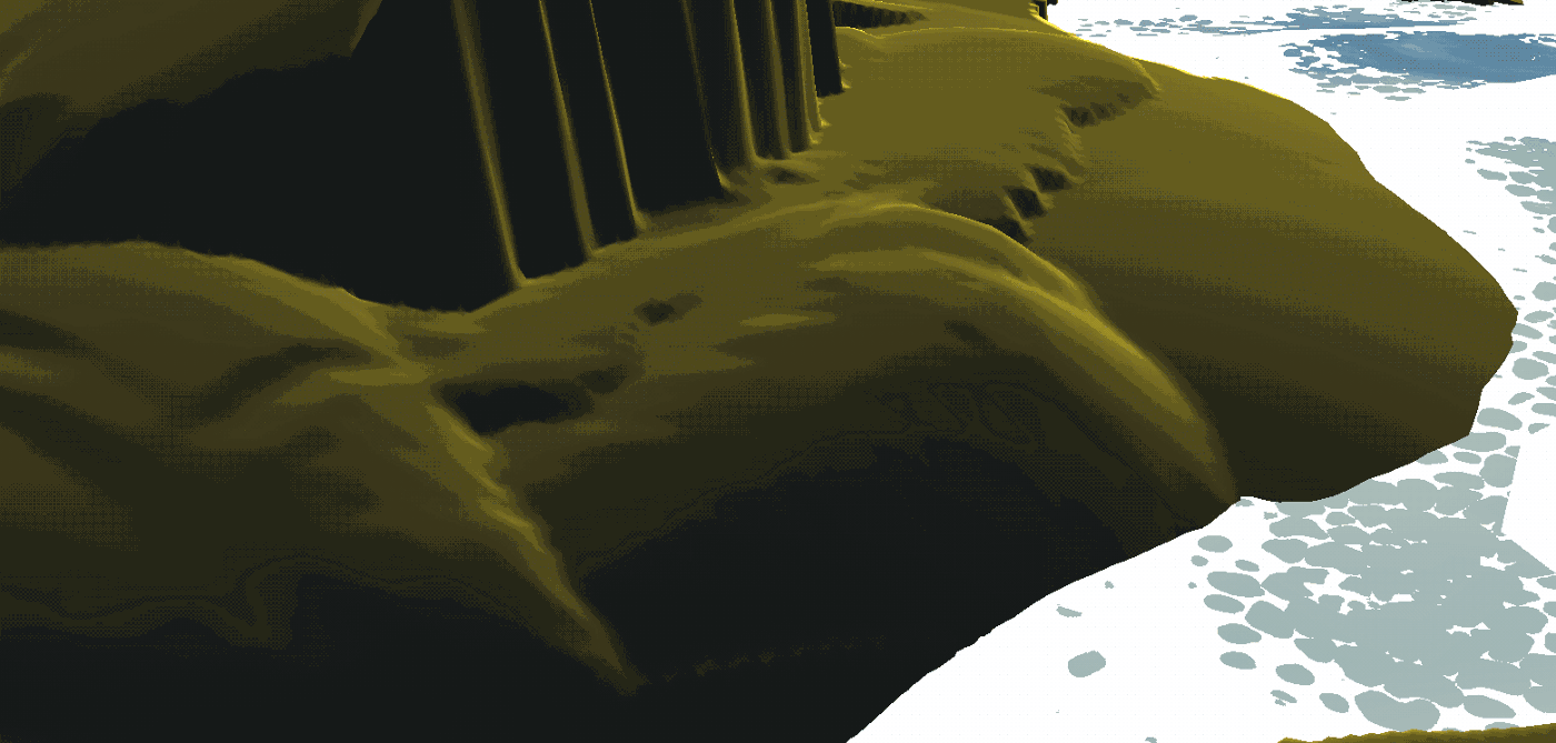 Luckily the overall size of the island we went with was not too big and from an art perspective, we could get away with only using 4 materials on the terrain so we managed to make our tool run on only 1 terrain mesh.